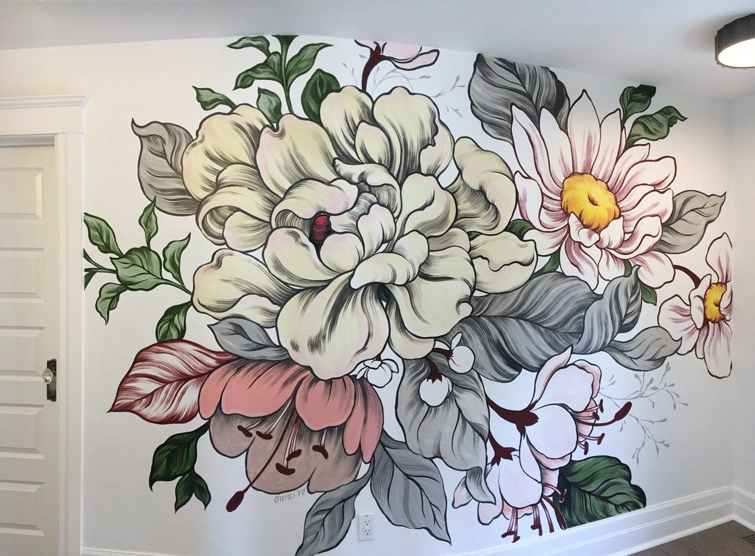 Красивая роспись узоры с цветами стен на улице