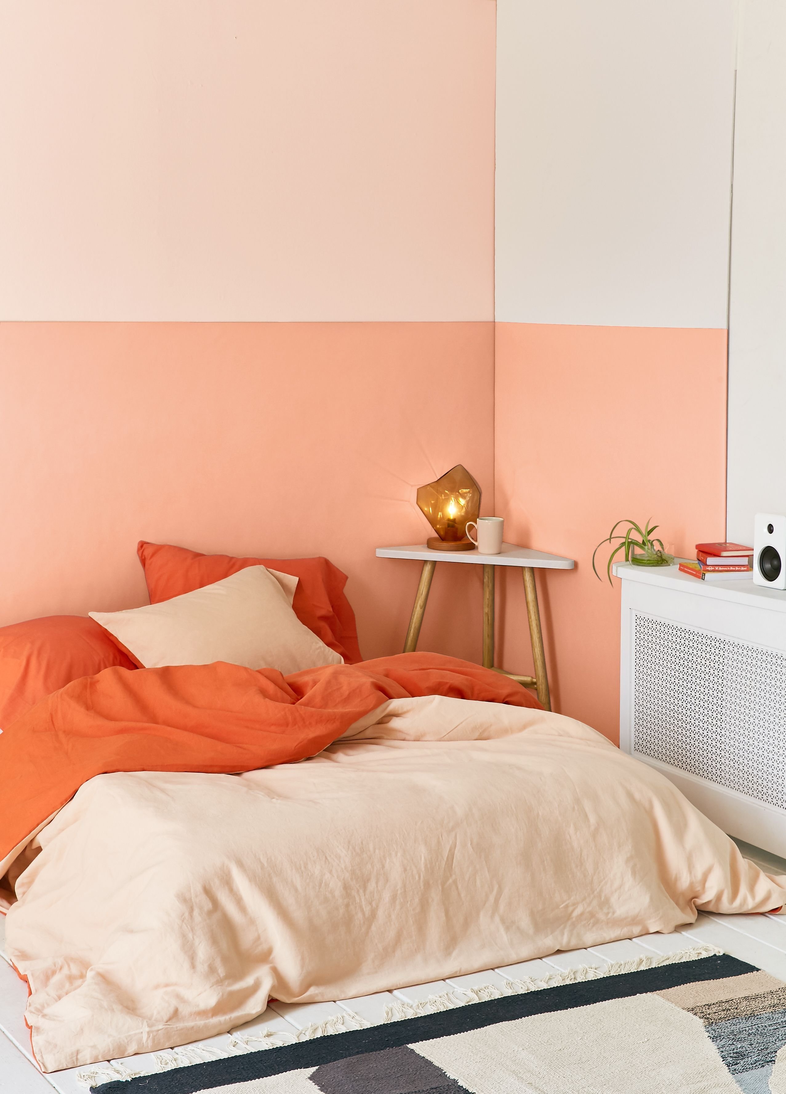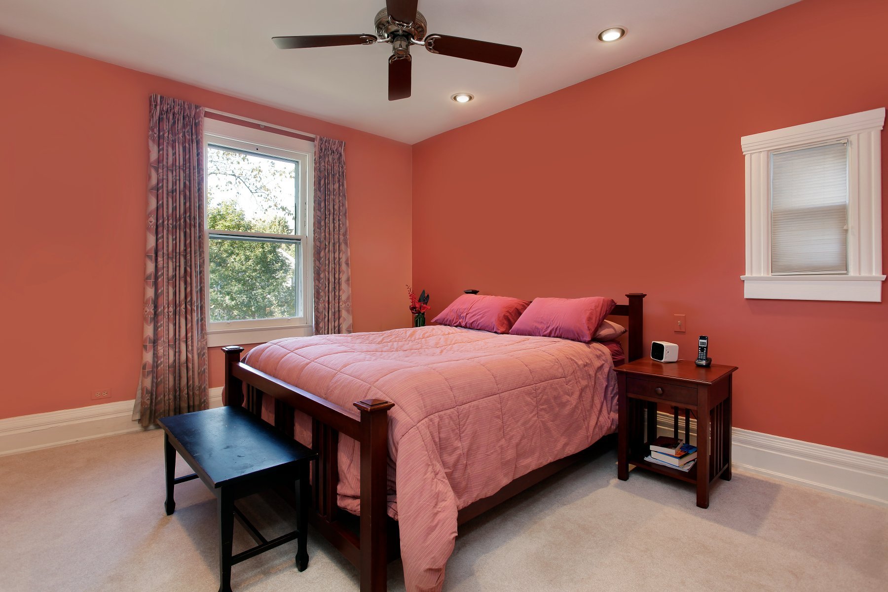 Коралловый цвет в интерьере спальни