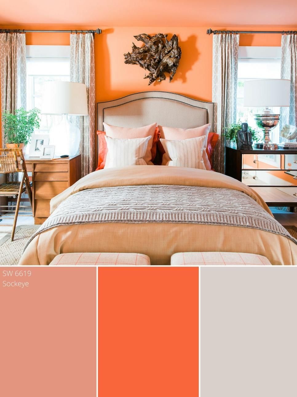 Спальня в коралловых тонах