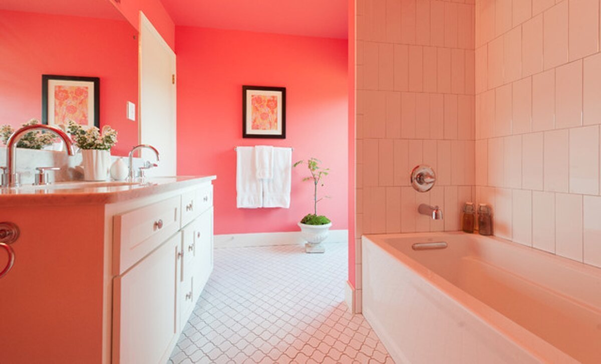 Коралловый цвет стен в интерьере