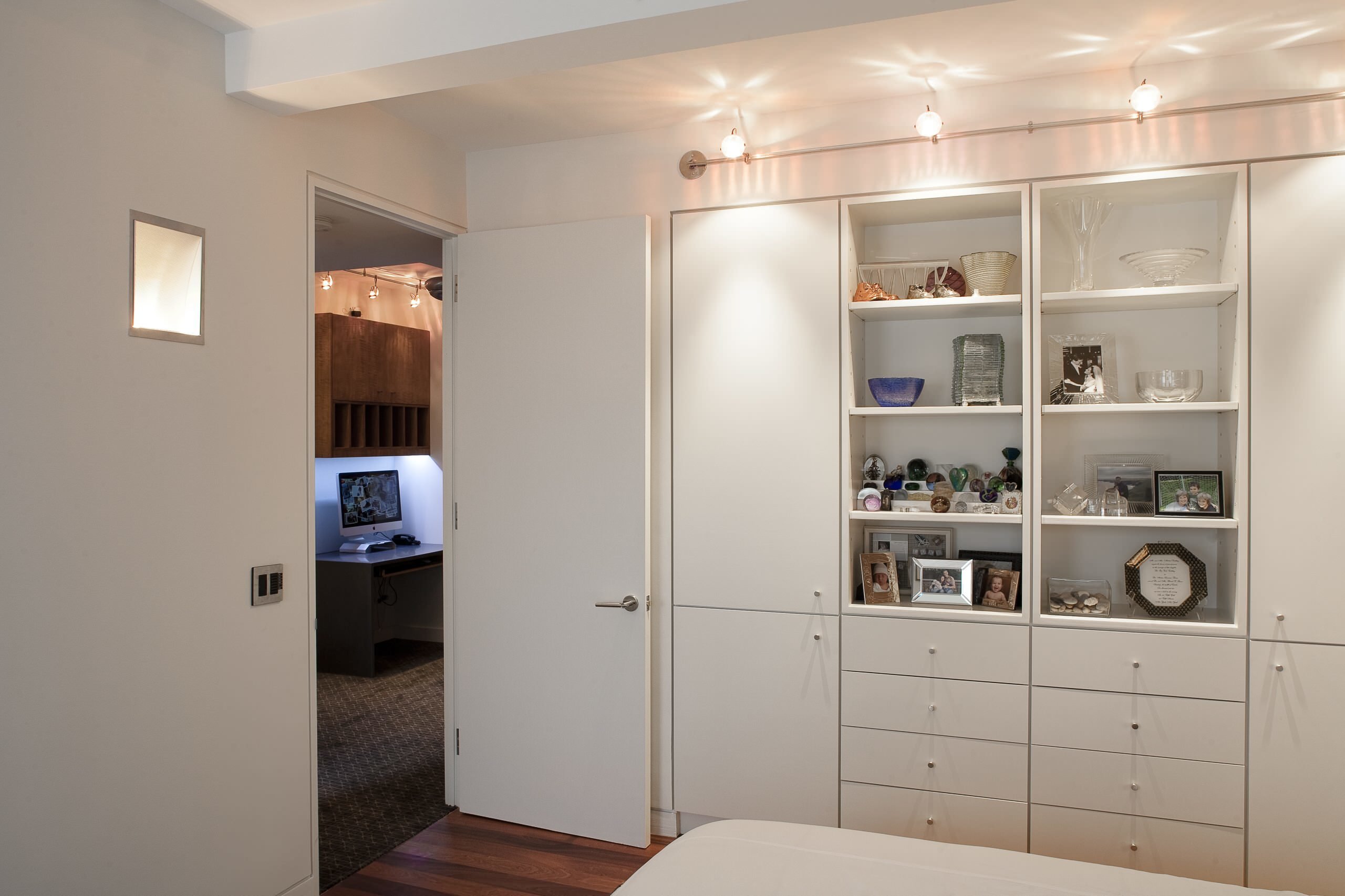 Встроенный шкаф в нише в комнате