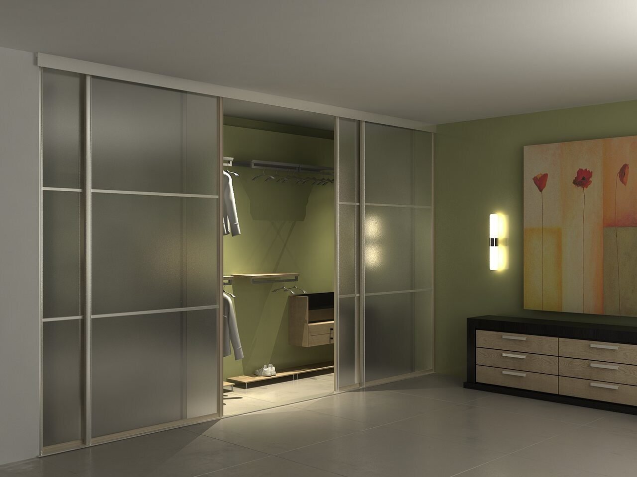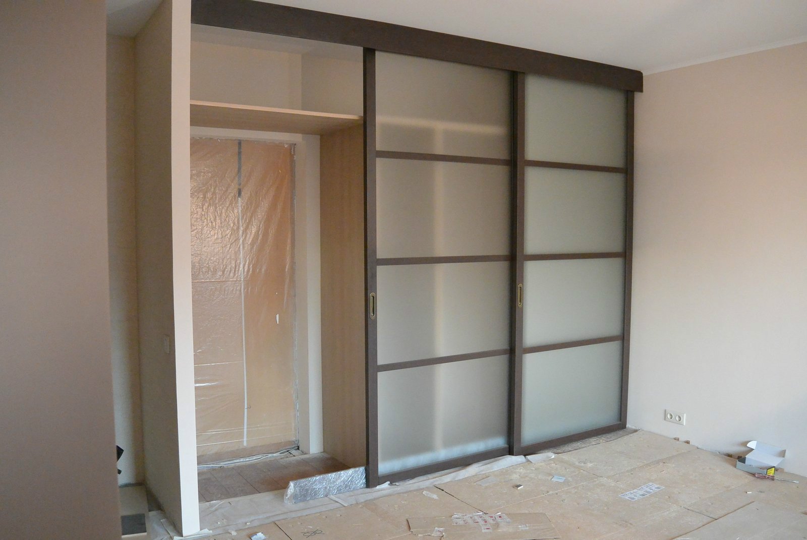 Шкаф из гипсокартона с раздвижными дверями