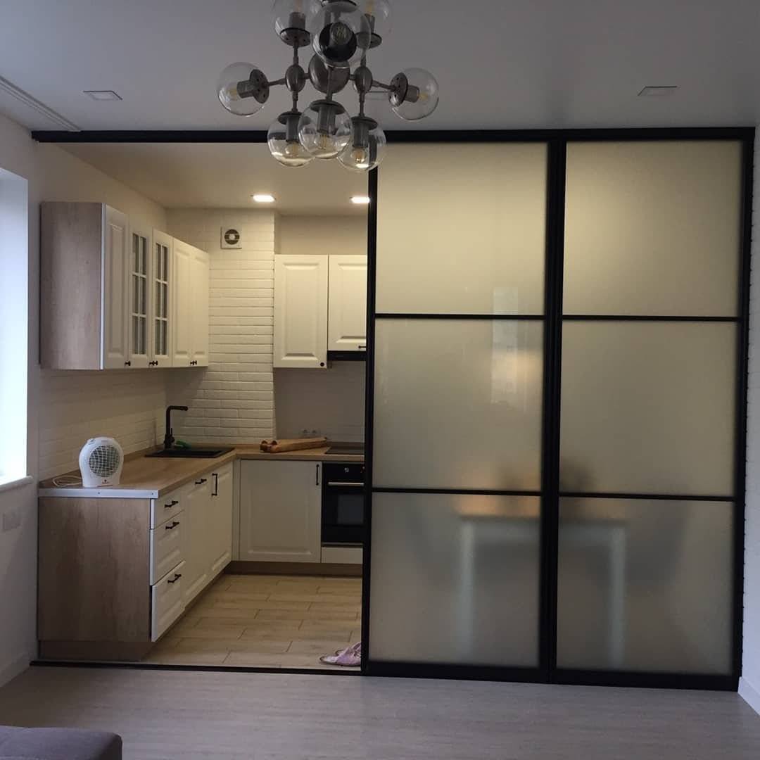 Перегородка с раздвижной дверью для зонирования комнаты
