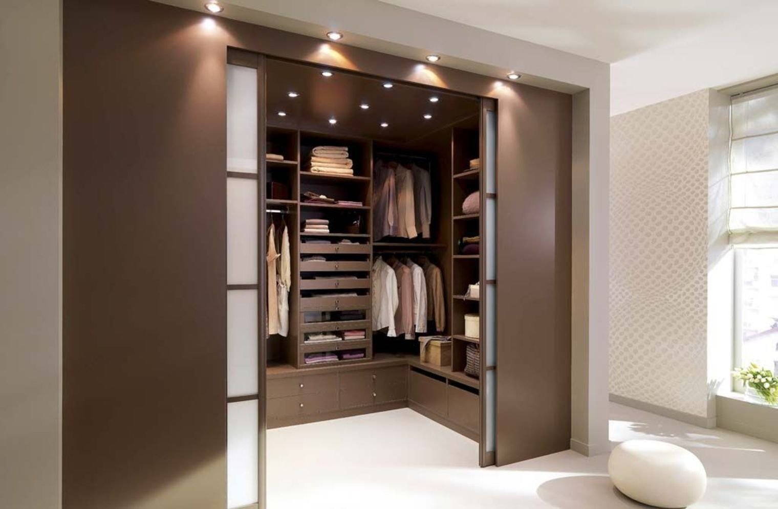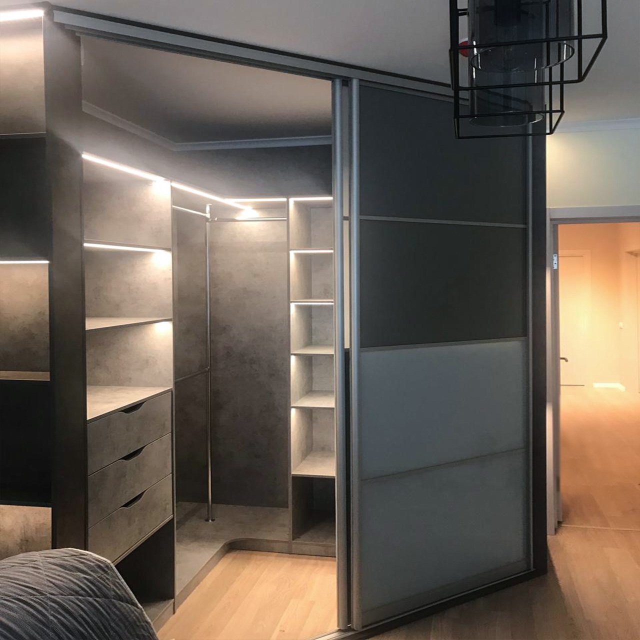 Угловая гардеробная в спальне