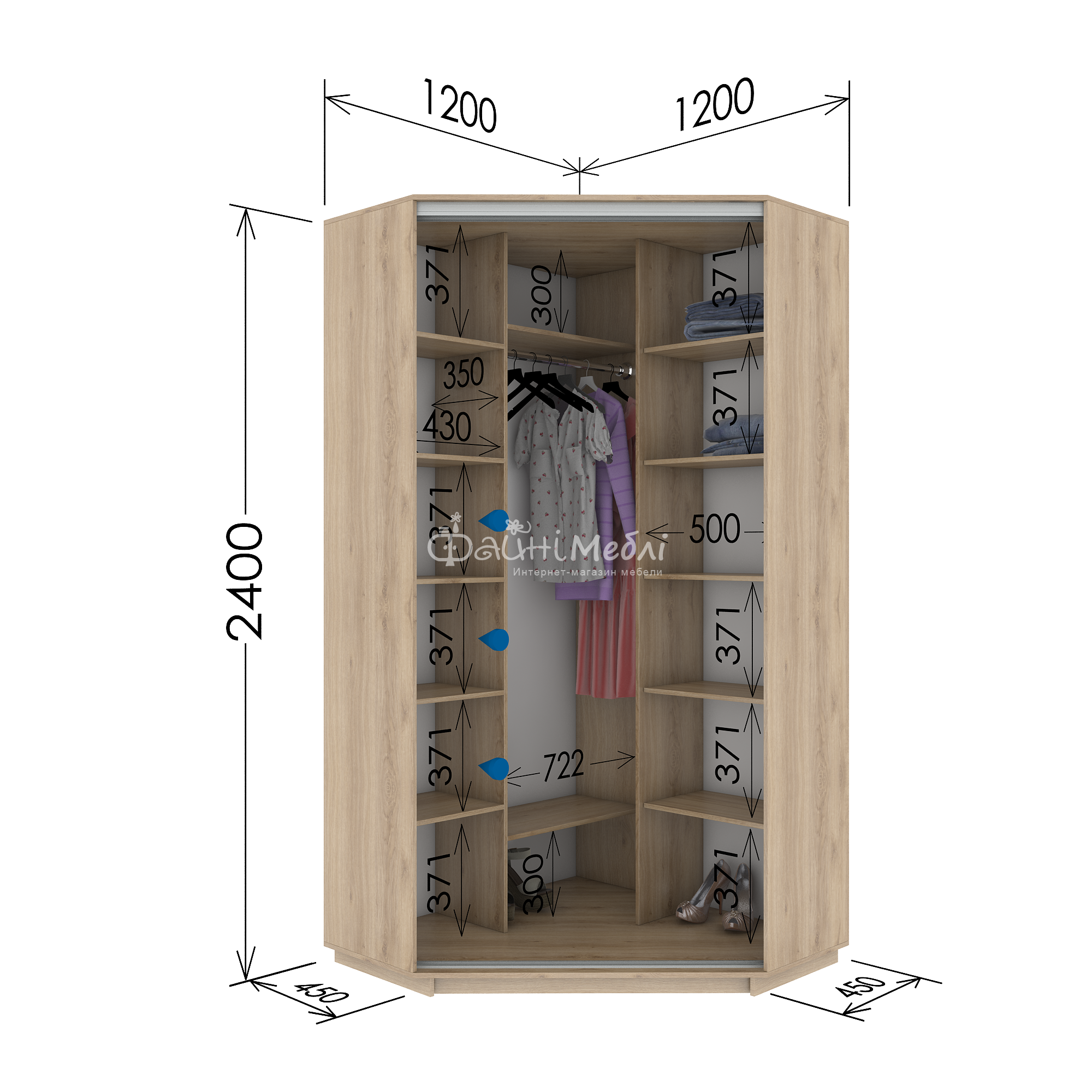 Шкаф купе Анна угловой 1450 х 1450 х 2200