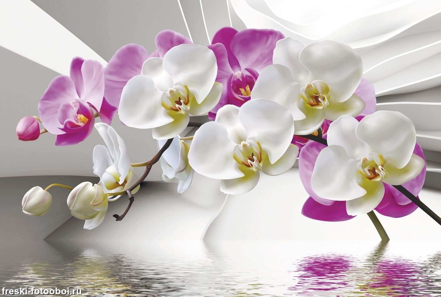 Фотообои Divino р-075 Орхидея на объемных волнах 300х270см