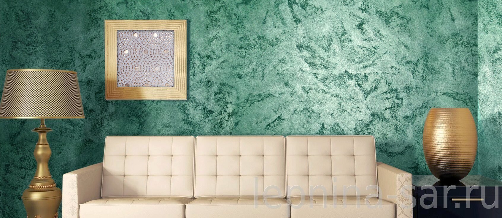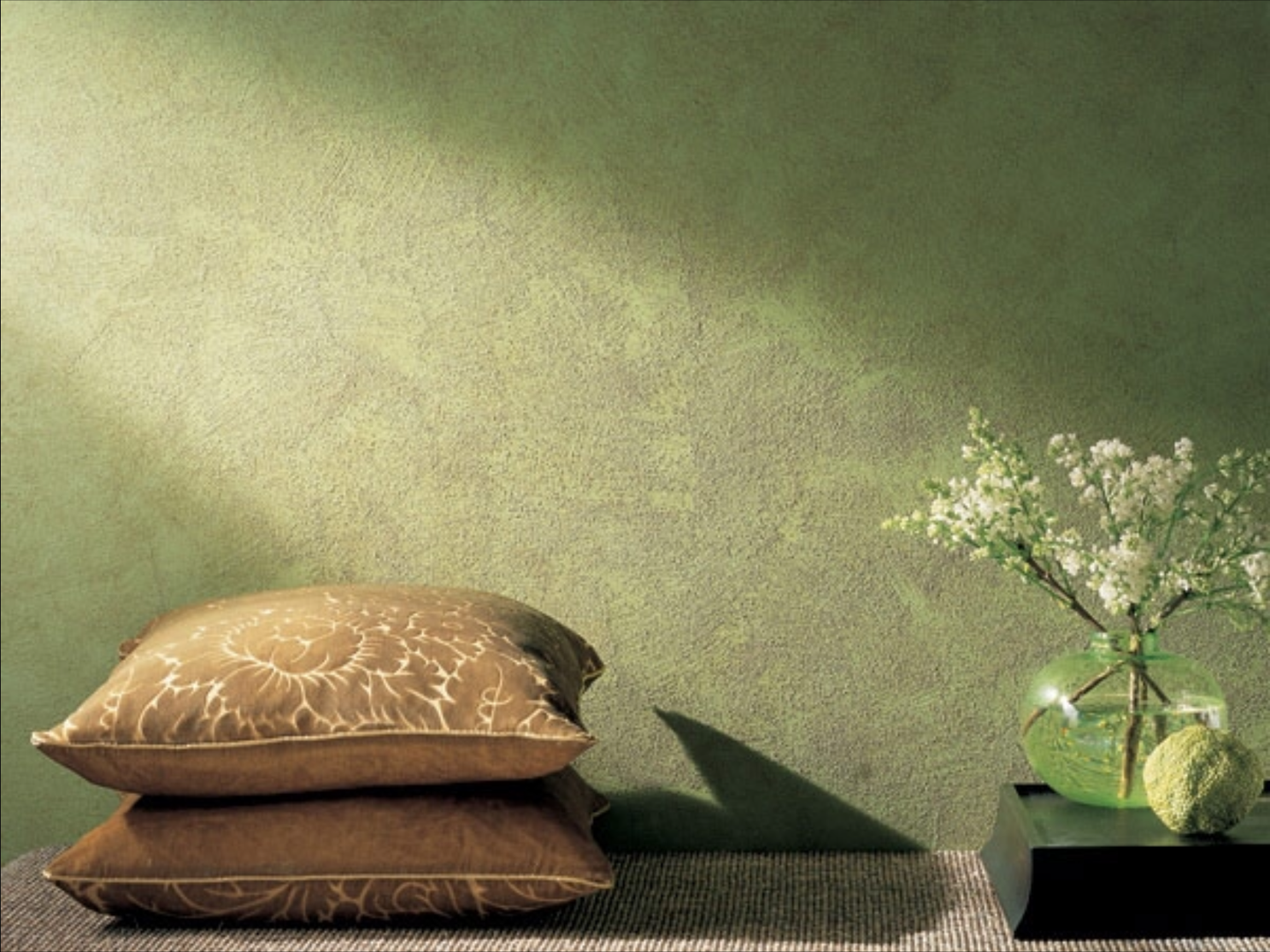 Зелёная декоративная штукатурка в интерьере