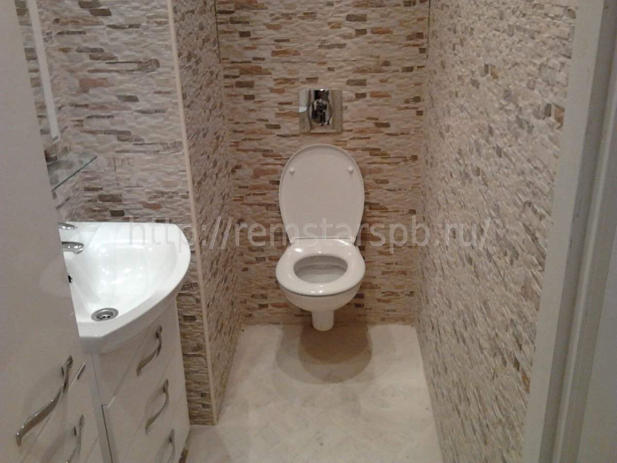 Отделка туалета декоративным камнем