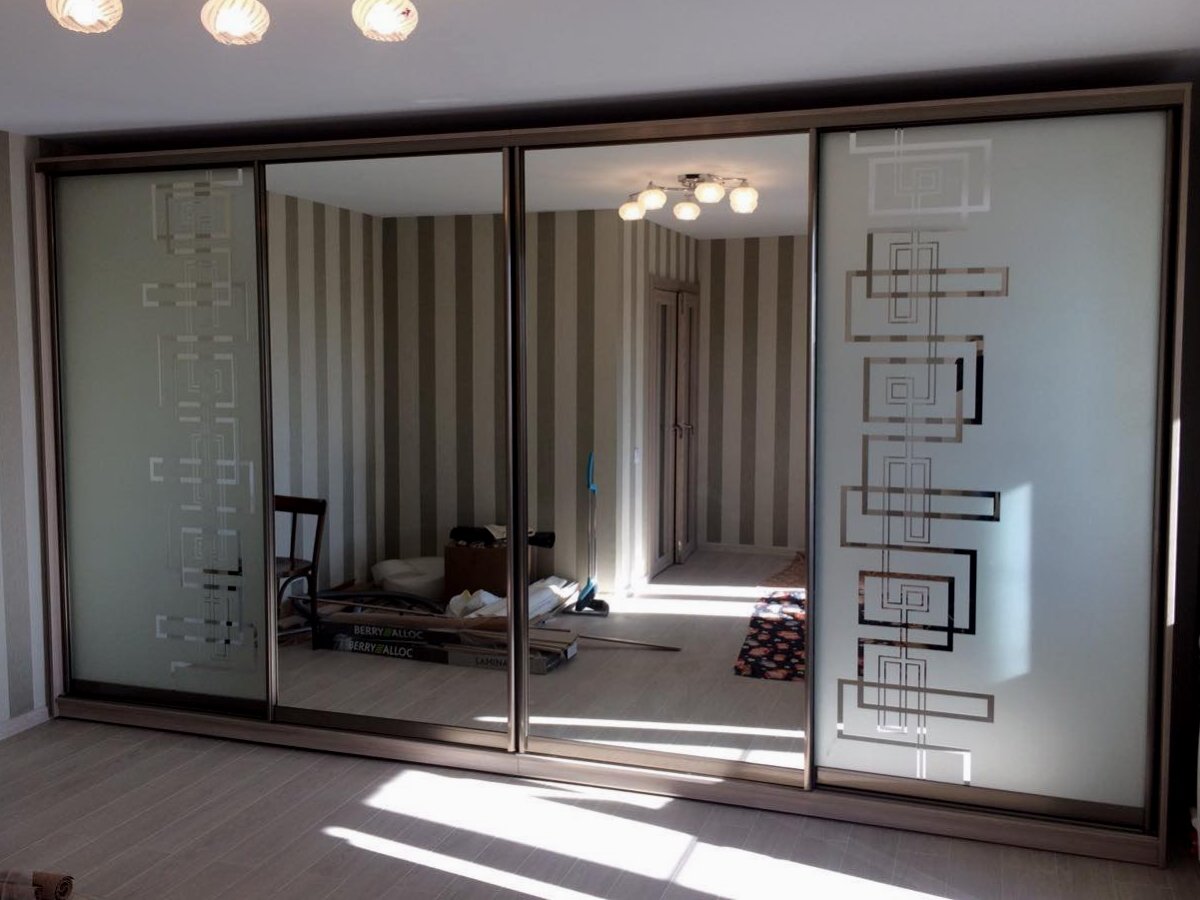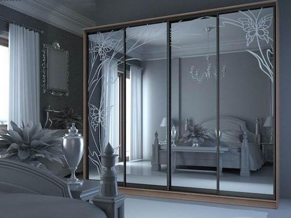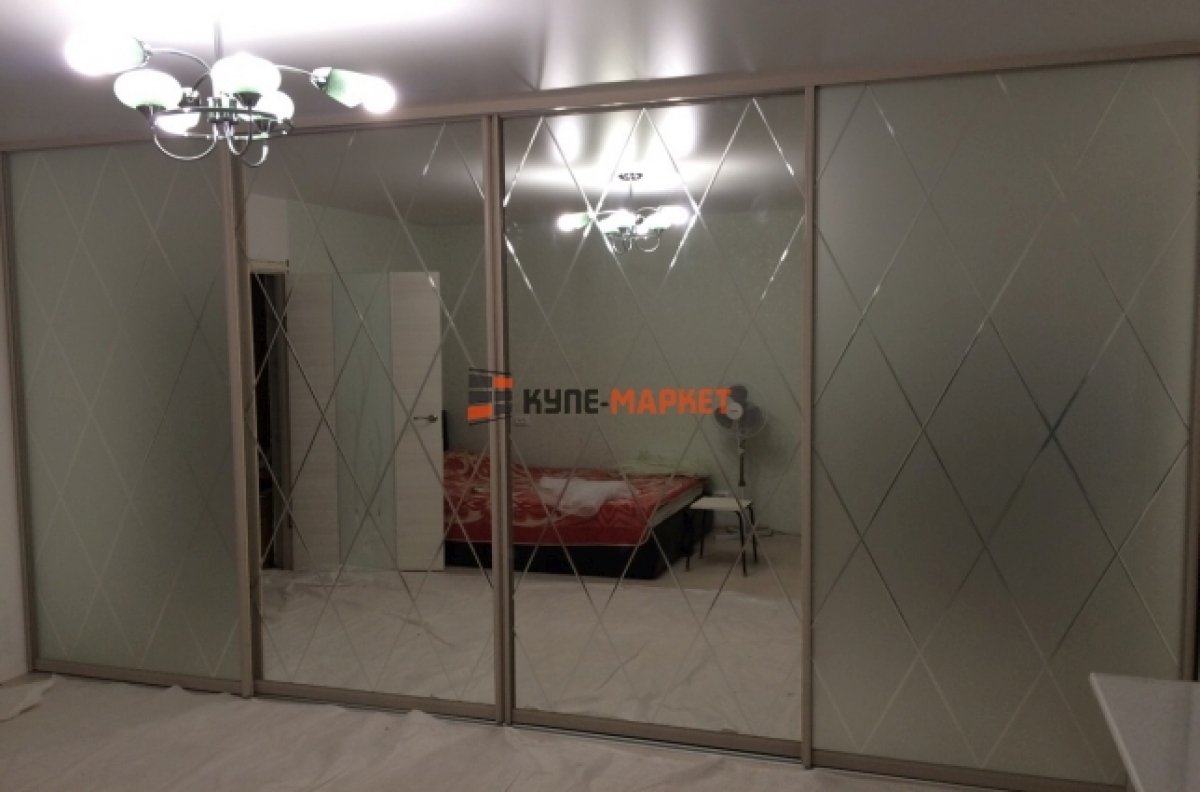 Шкаф купе 4 двери с зеркалом пескоструй