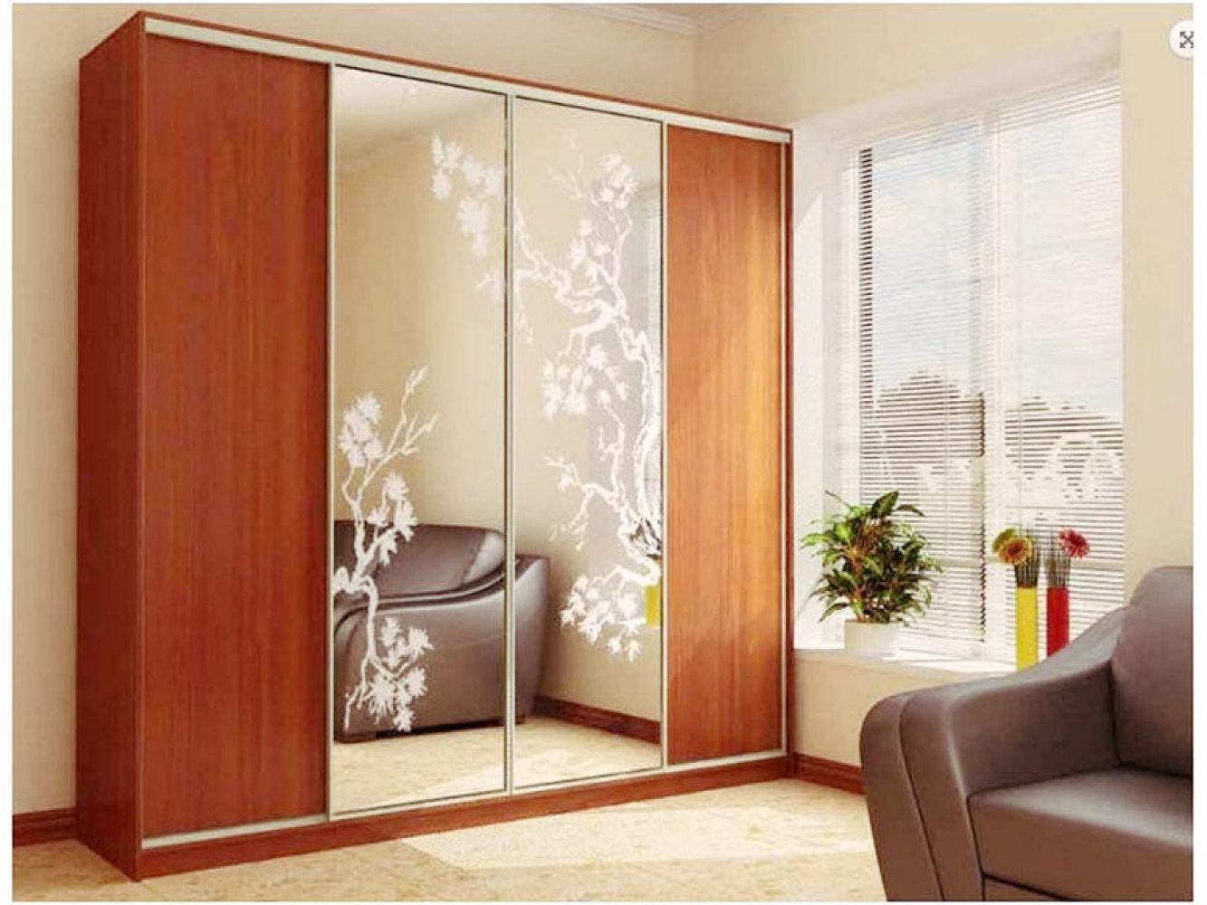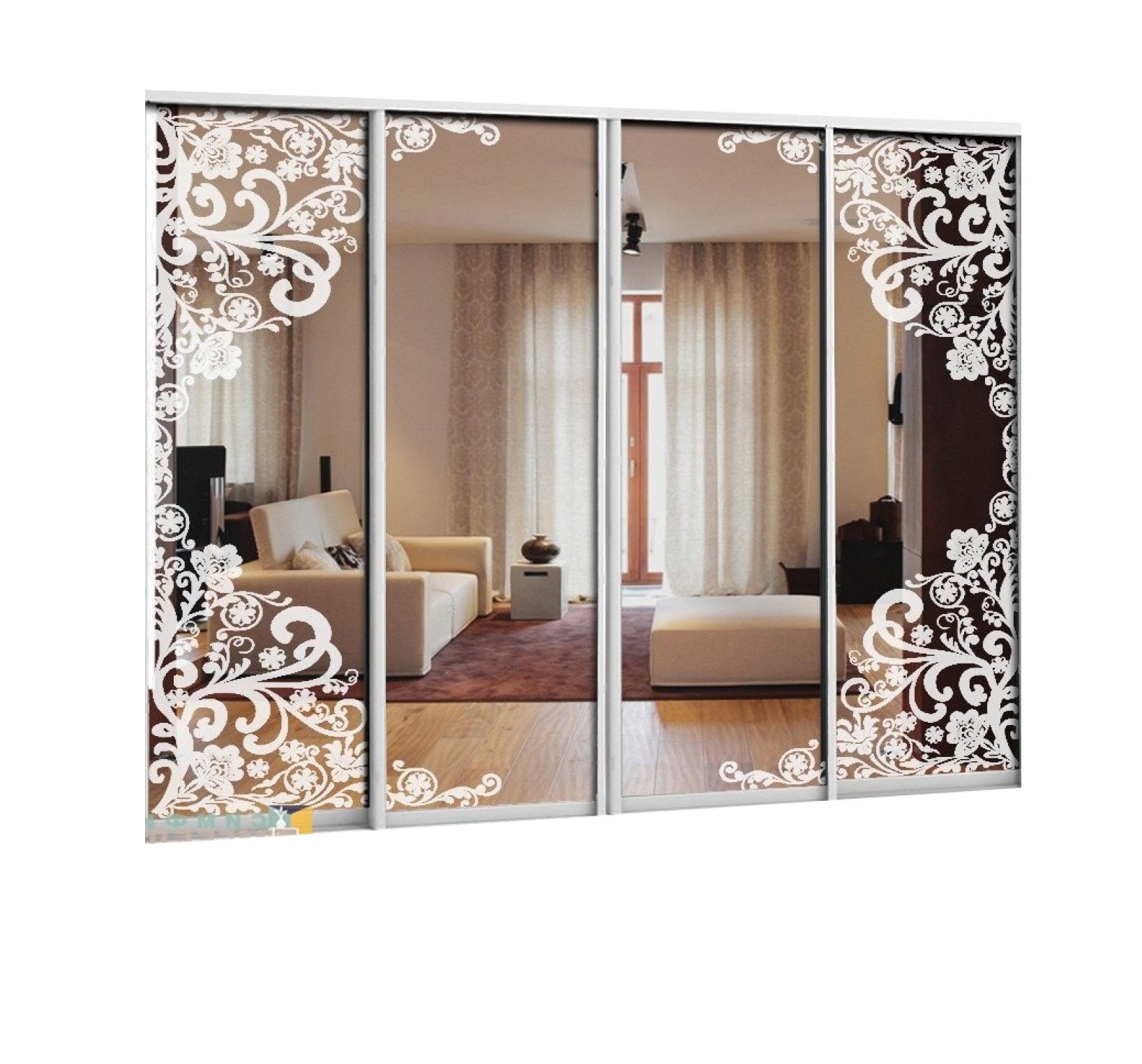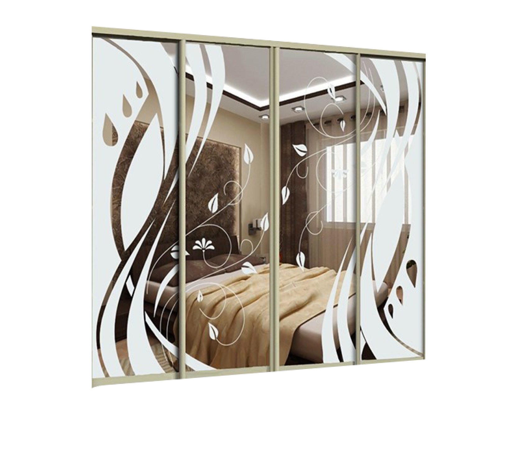Шкаф купе 4 двери с зеркалом пескоструй
