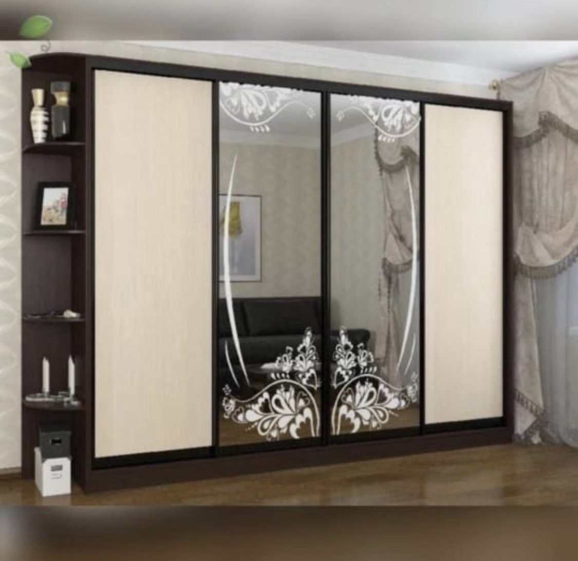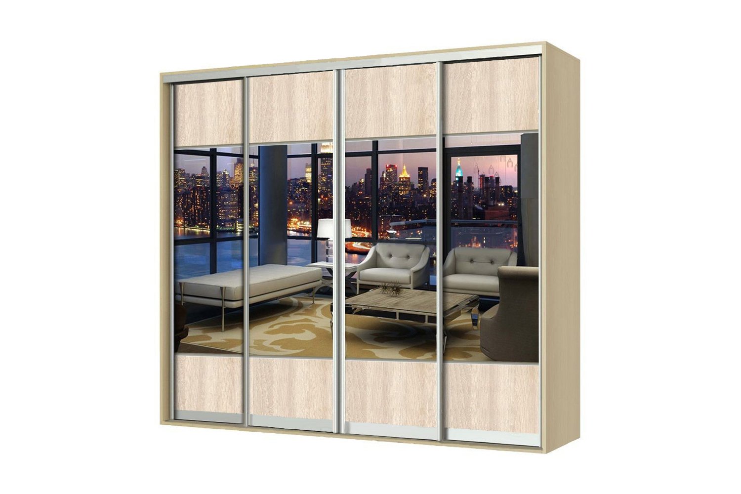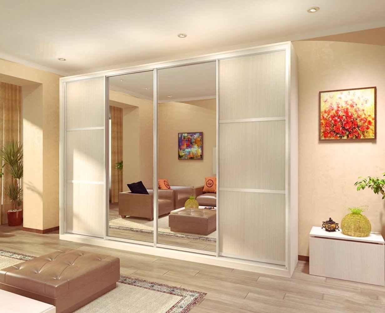 Четырехдверный шкаф купе с зеркалами