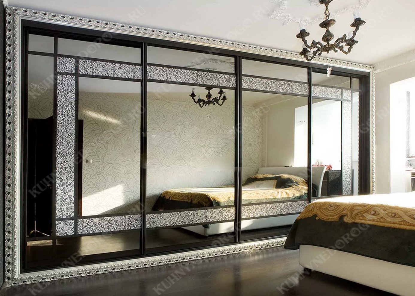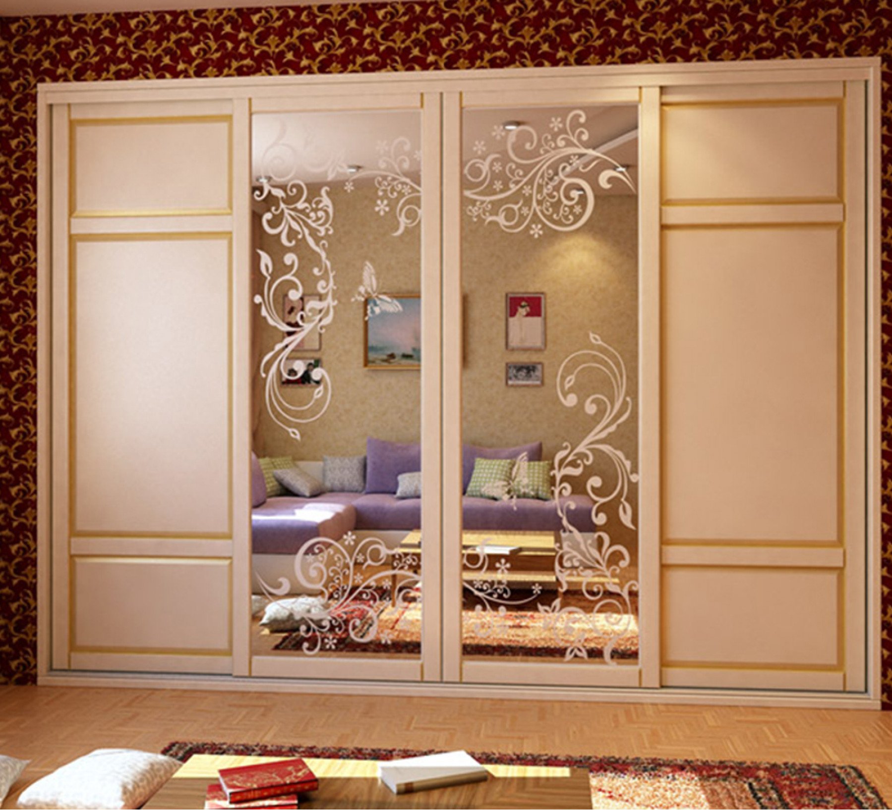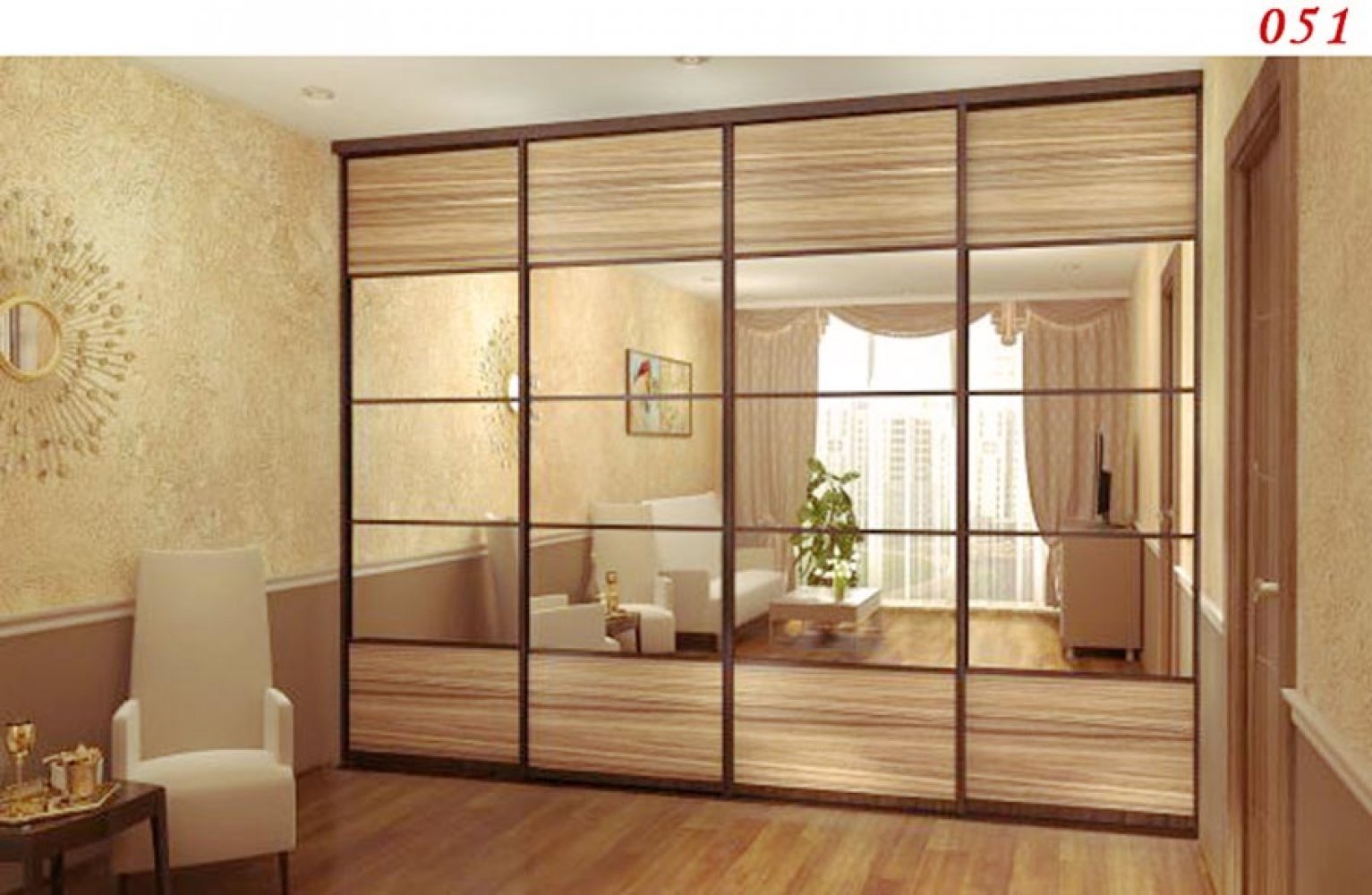 Четырехдверный шкаф купе с зеркалами