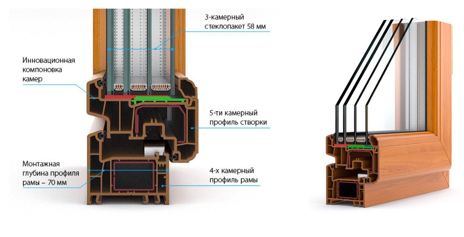 Пятикамерный профиль с двухкамерным стеклопакетом