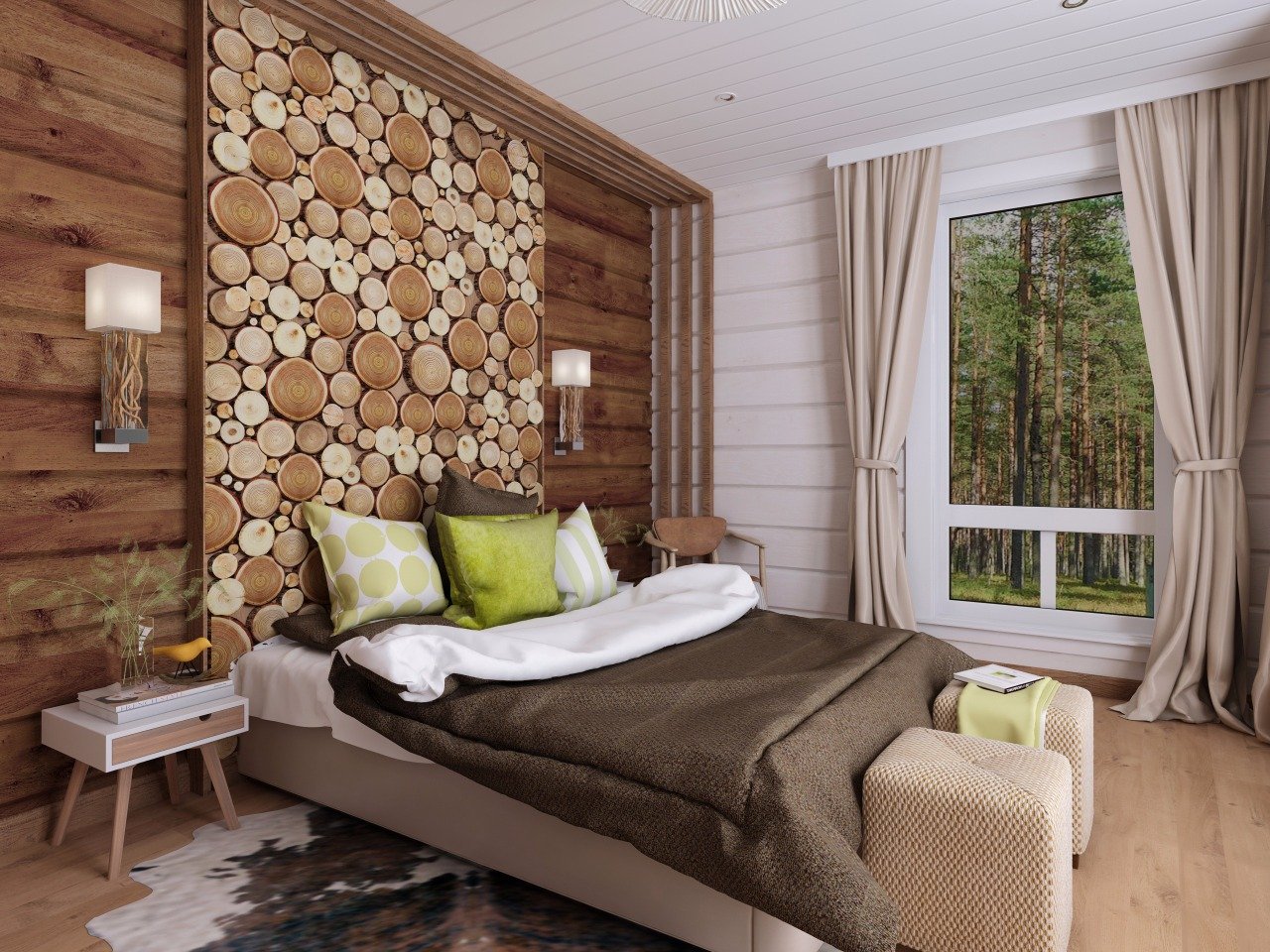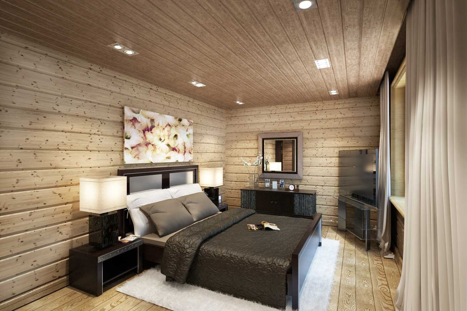 Вагонка в интерьере спальни