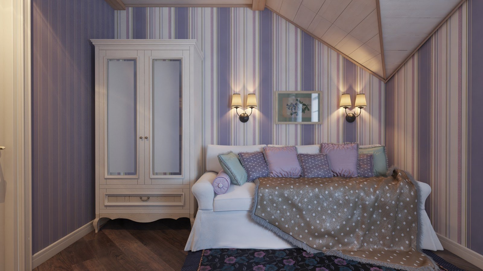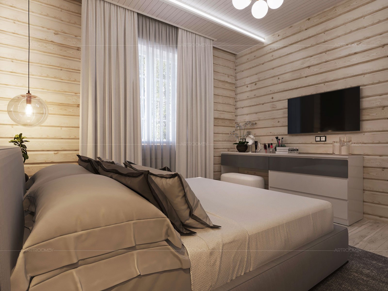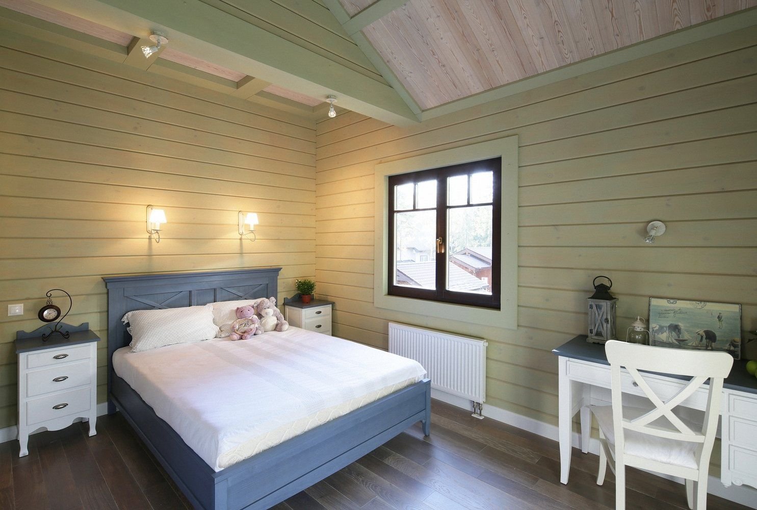 Спальня в Прованс стиле в срубовом доме