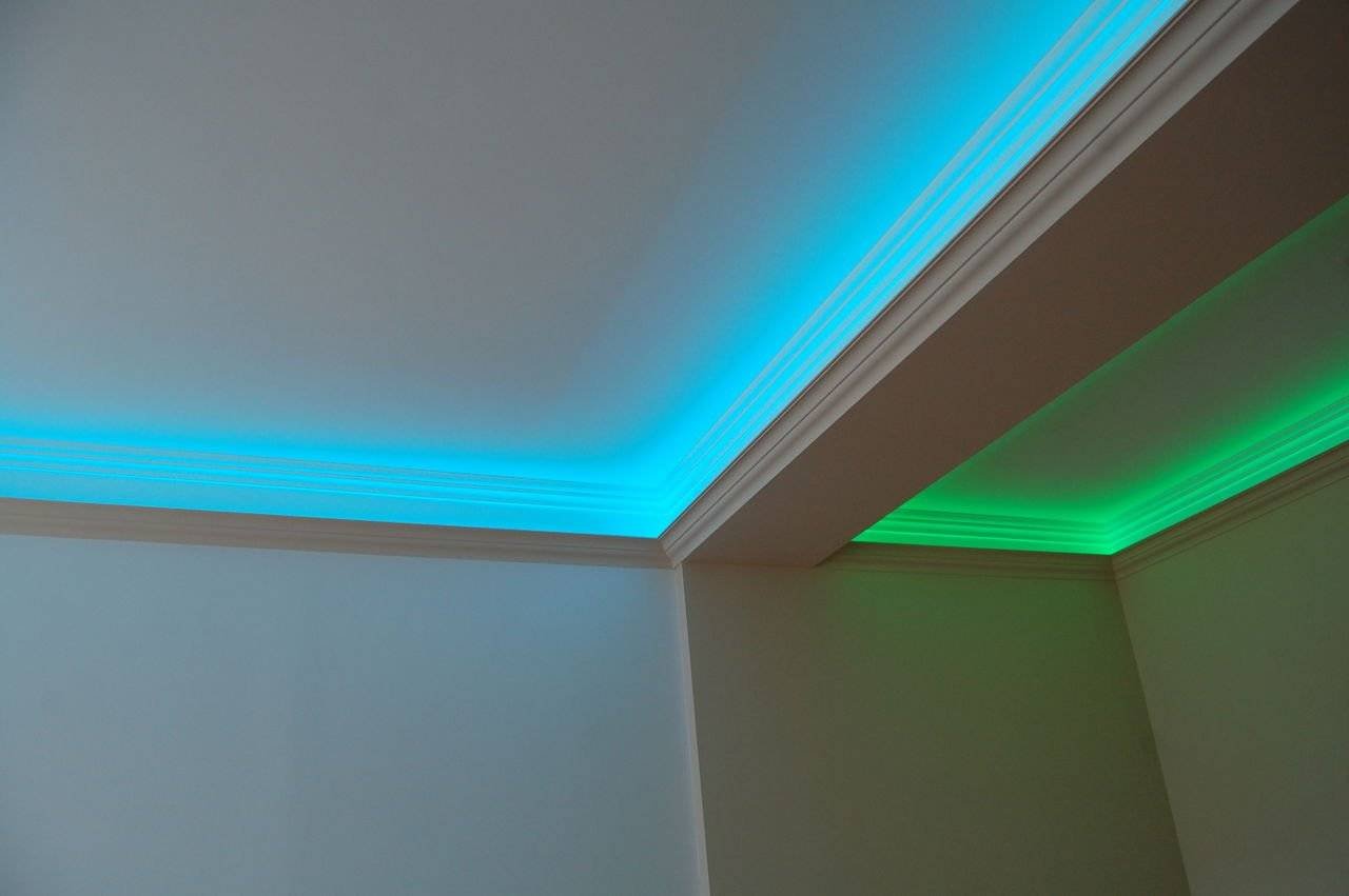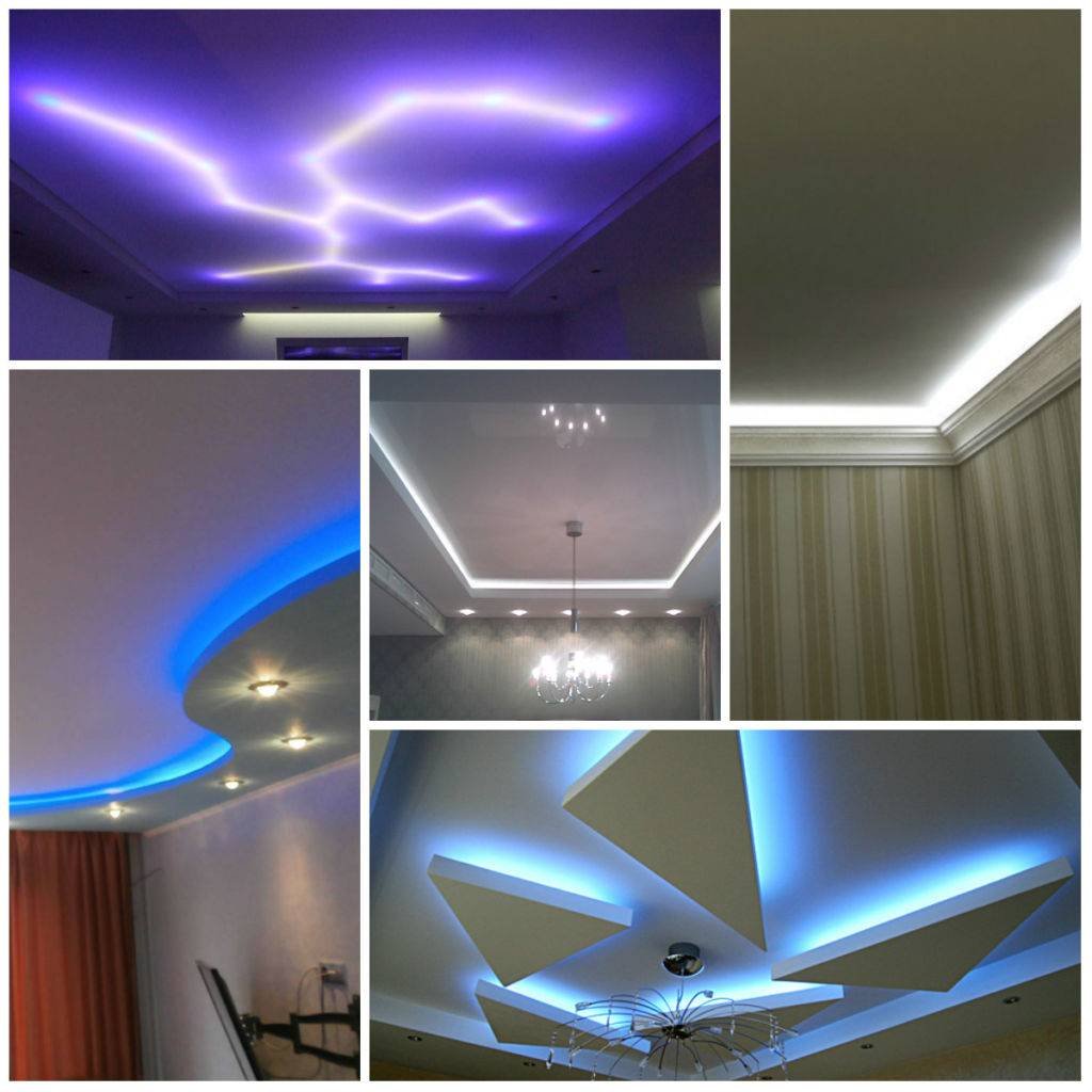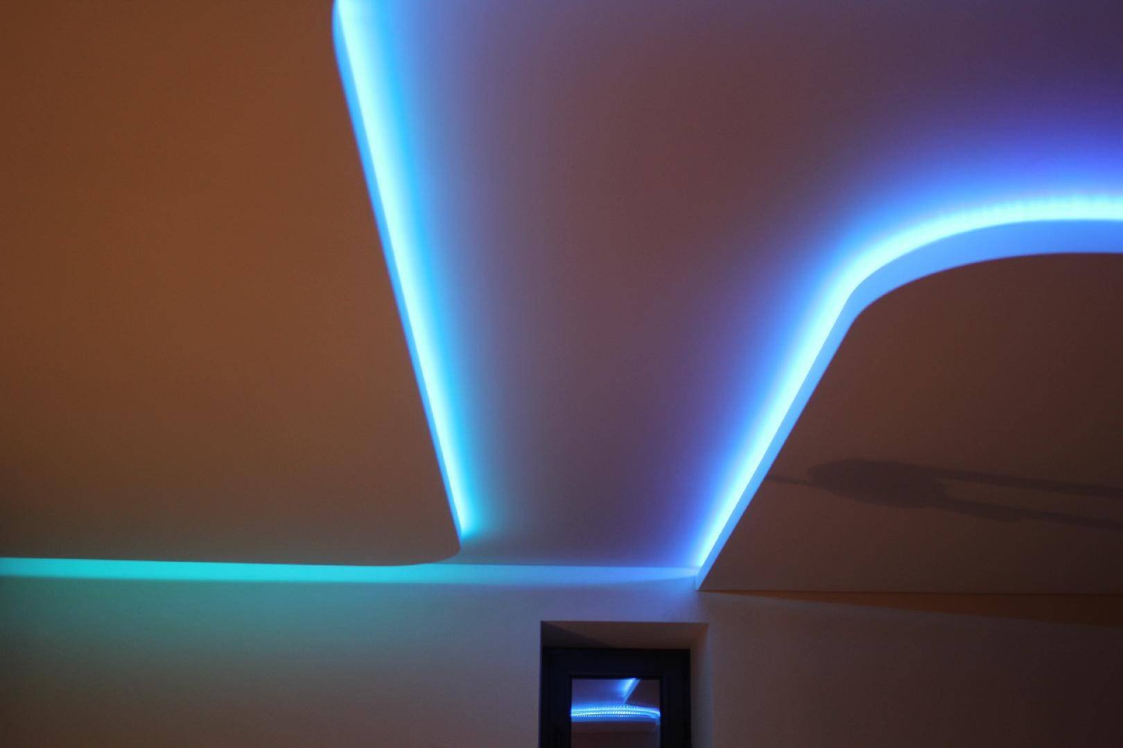 Варианты подсветки потолка светодиодной лентой