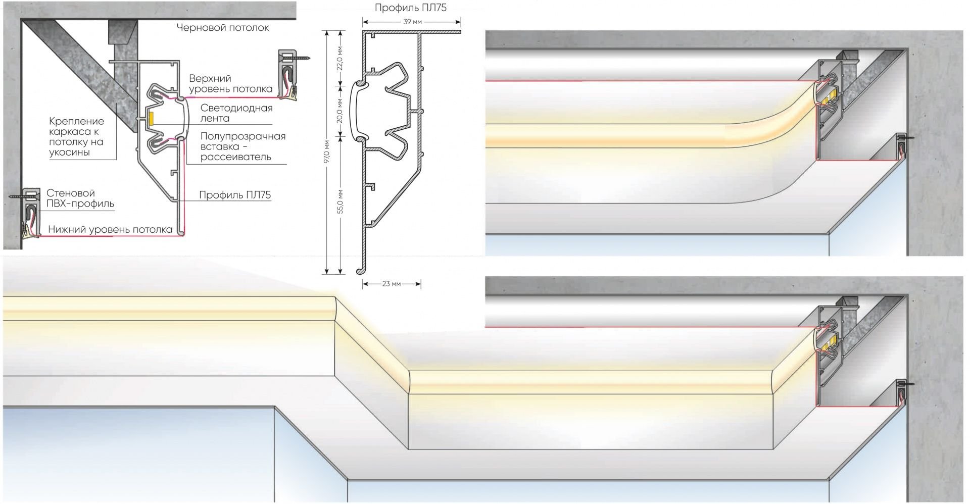 Скрытая подсветка потолка