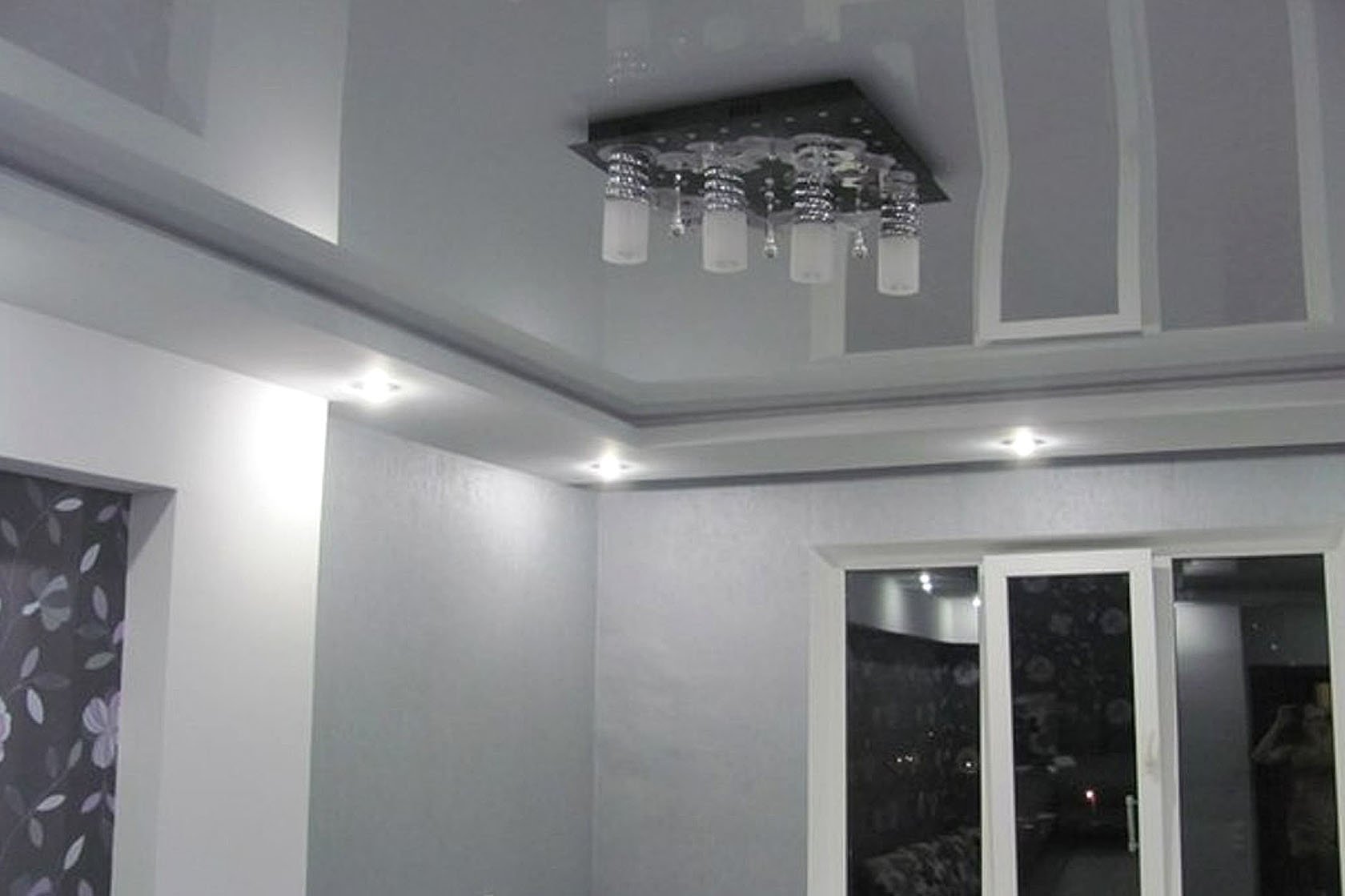 Натяжной потолок серого цвета