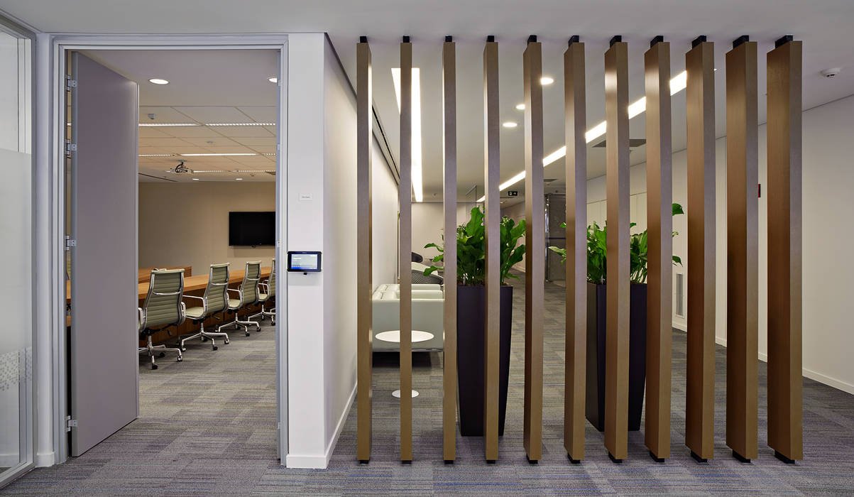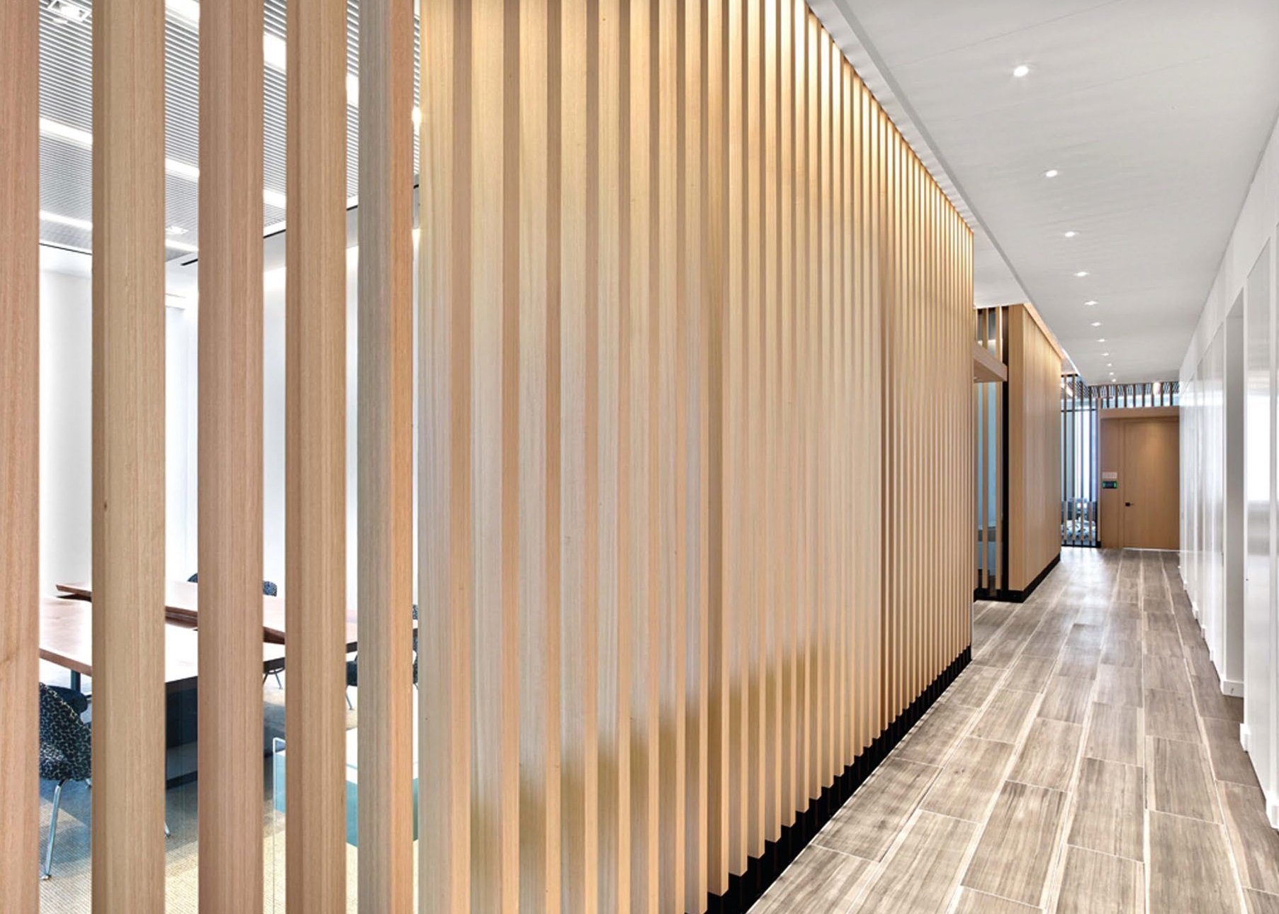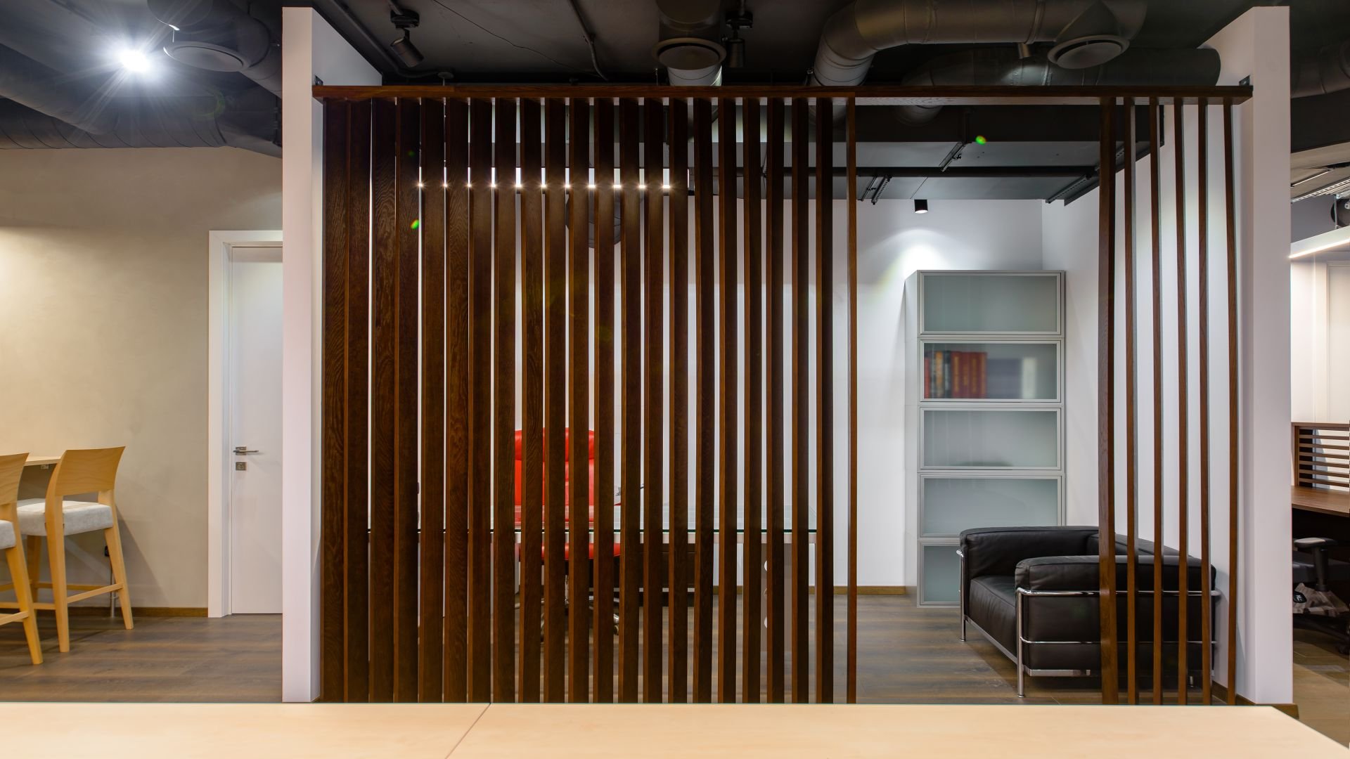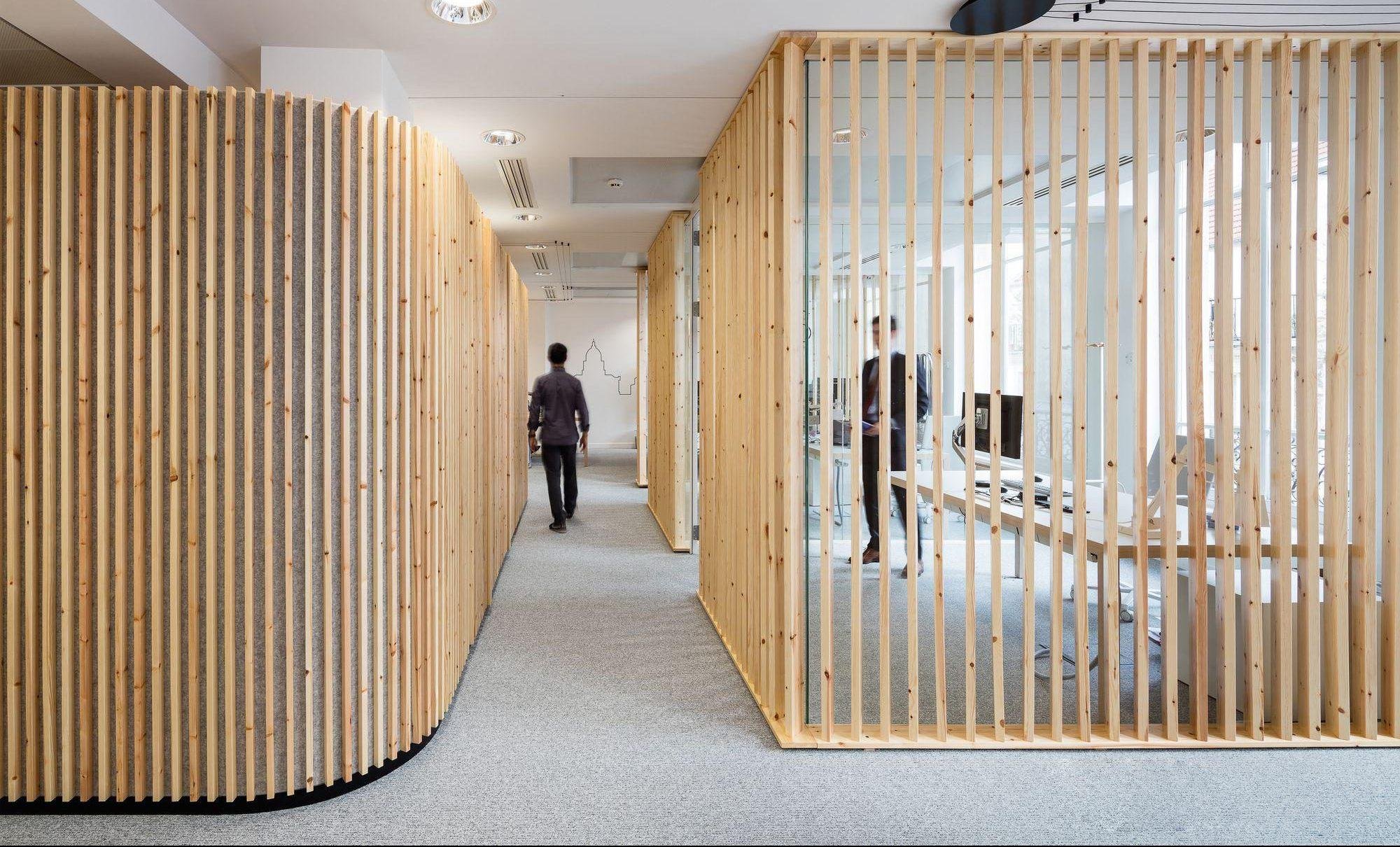 Деревянные реечные перегородки в офисе