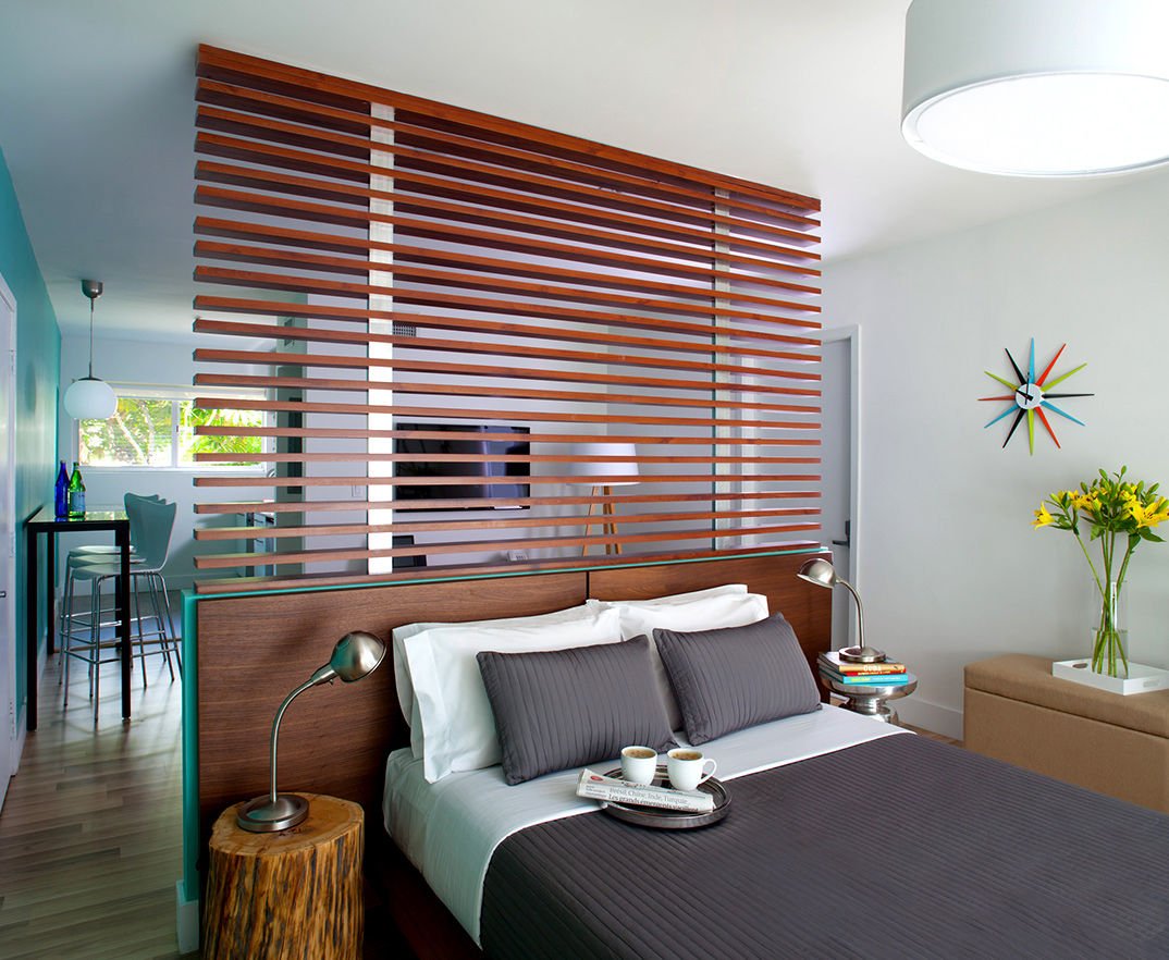 Горизонтальные деревянные жалюзи для зонирования