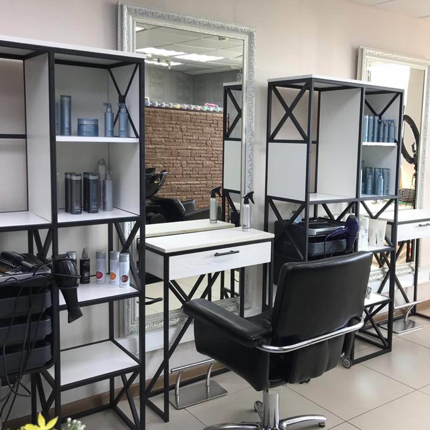 Стильные полки для парикмахерской