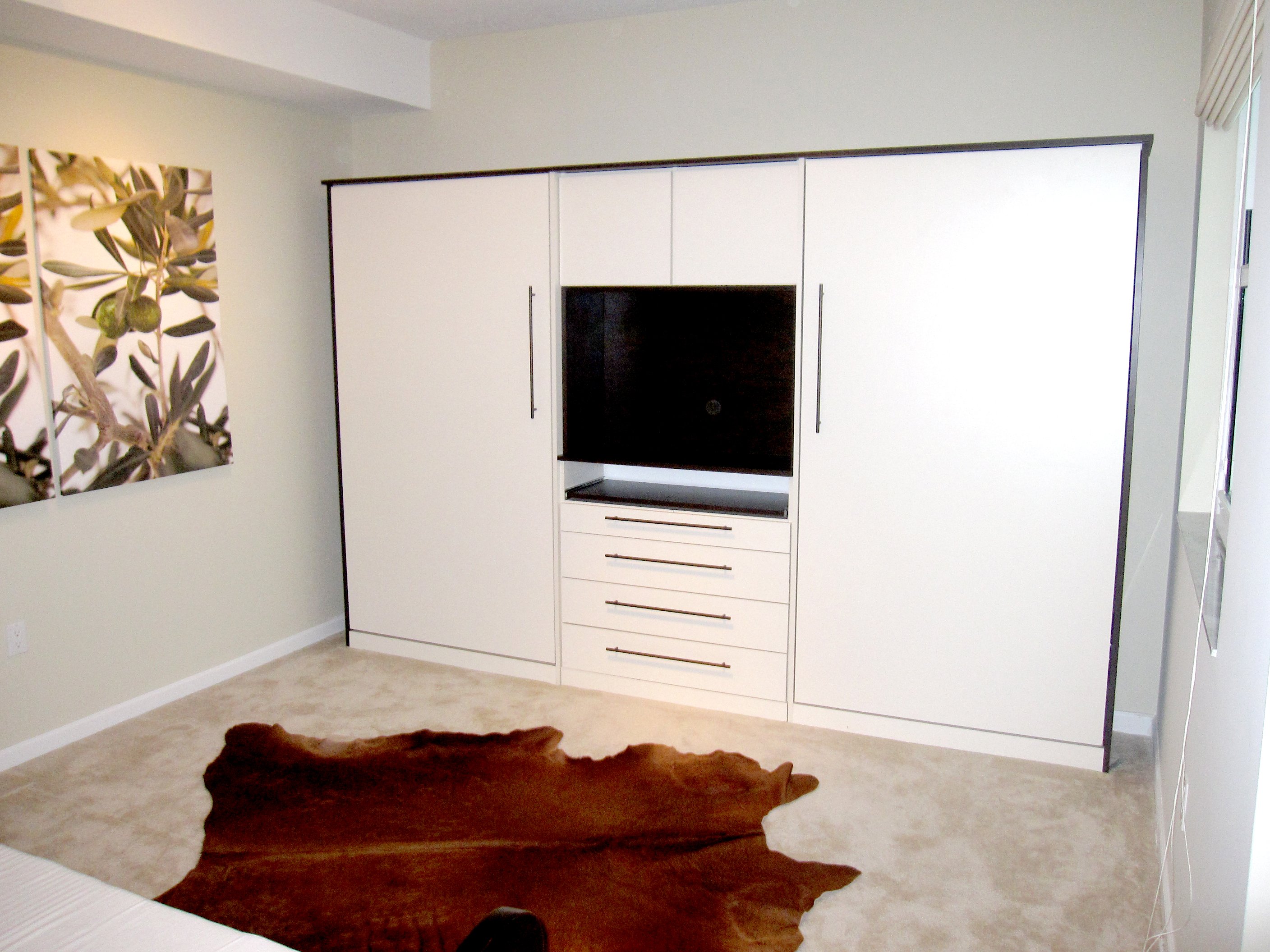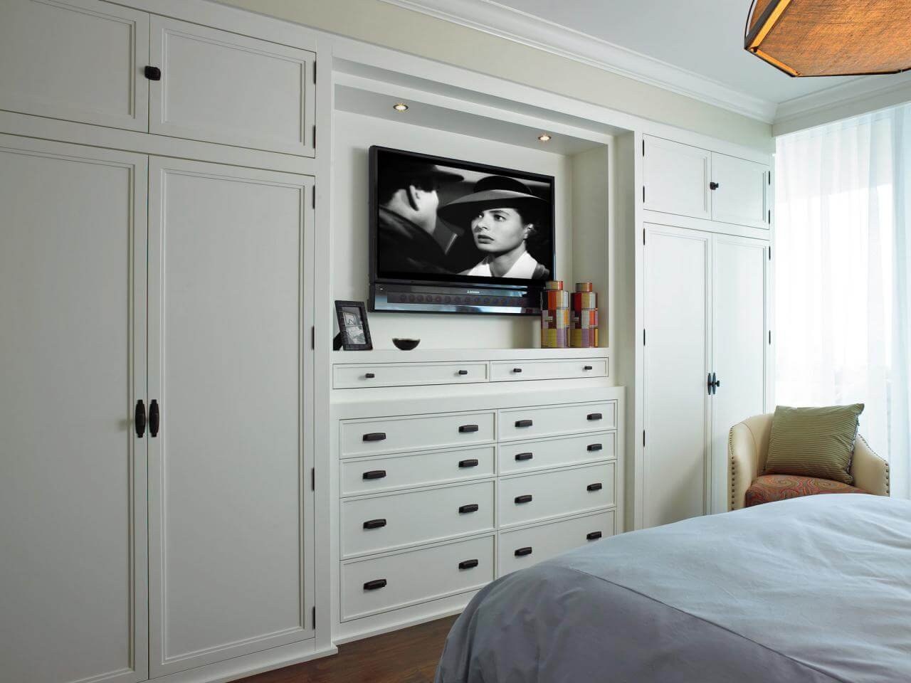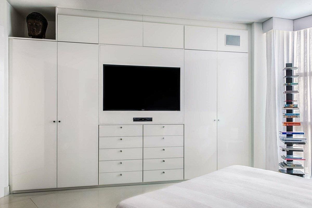 Телевизор встроенный в шкаф в спальне