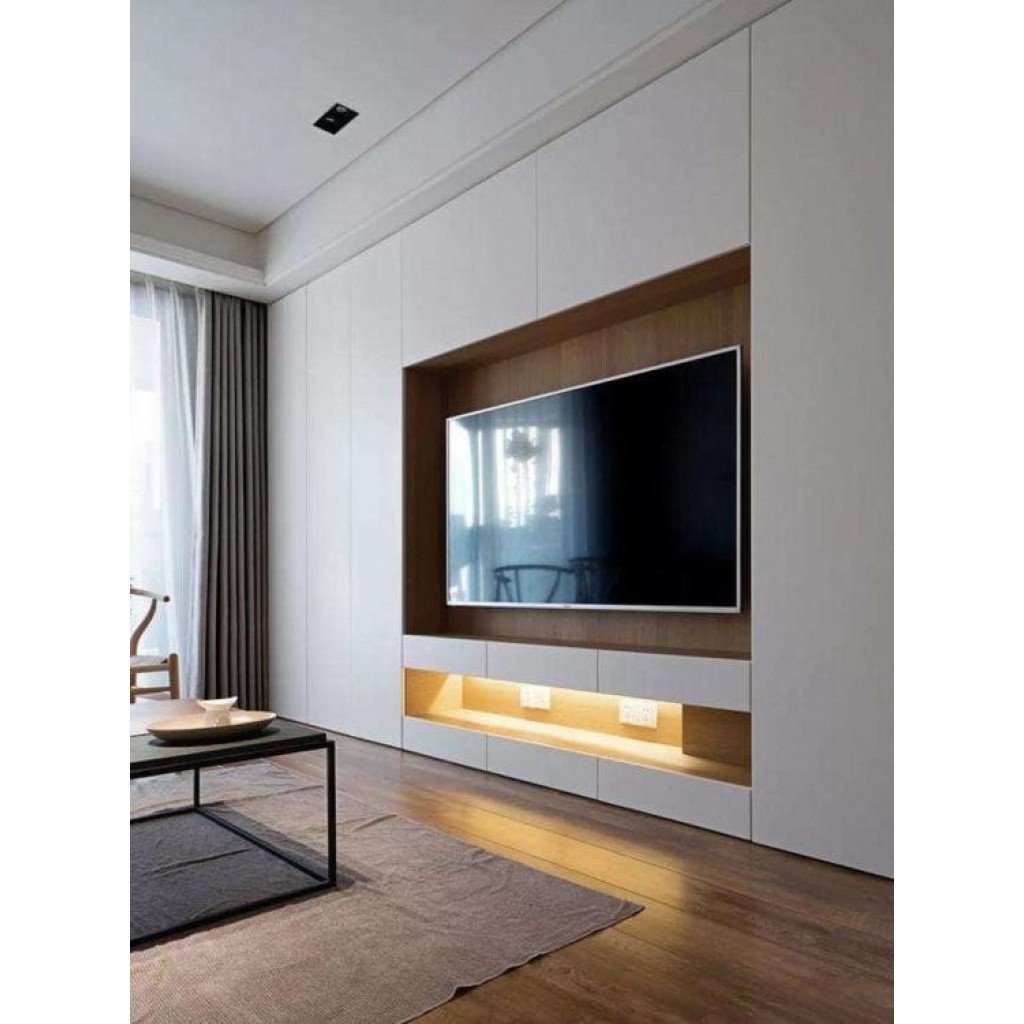 Шкаф в гостиную во всю стену с телевизором
