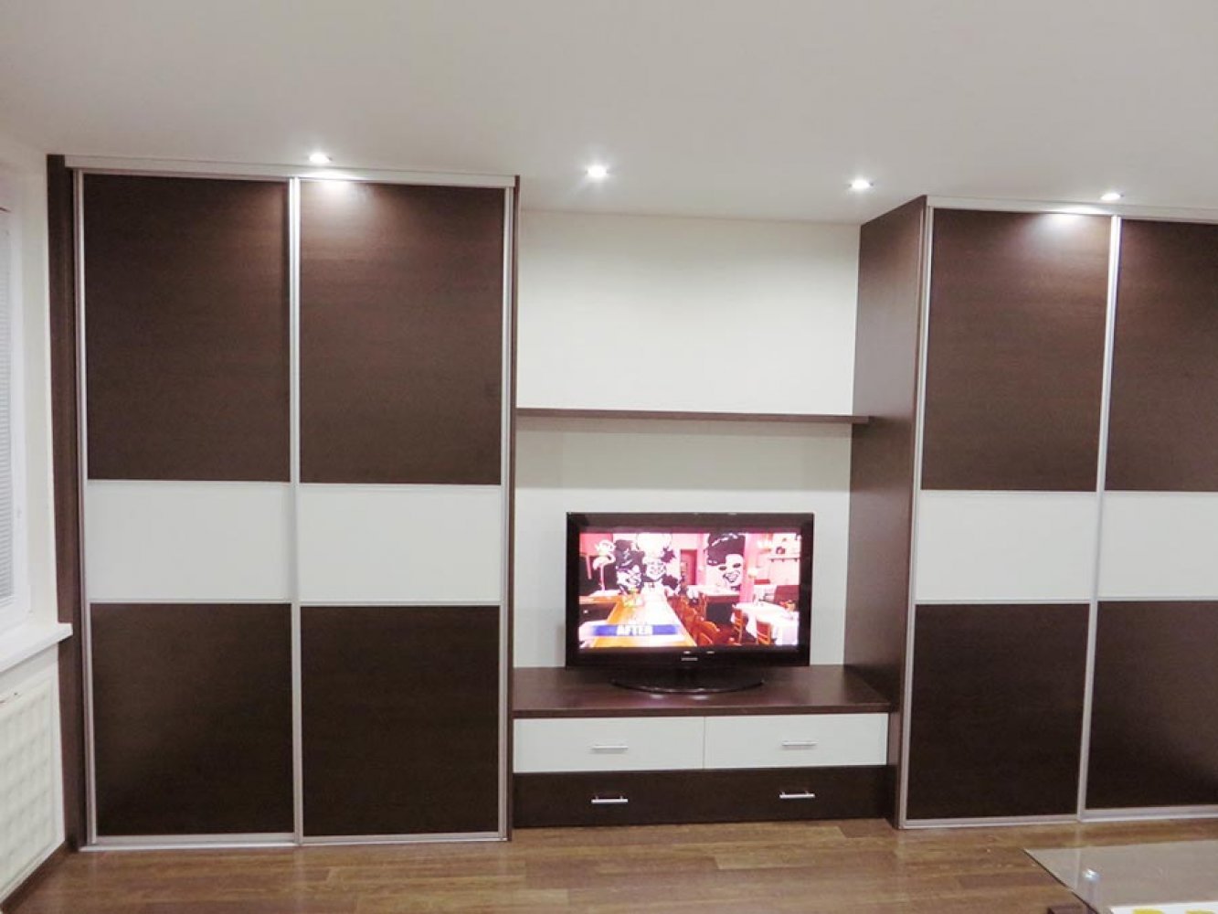 Шкаф встроенный в стену с телевизором