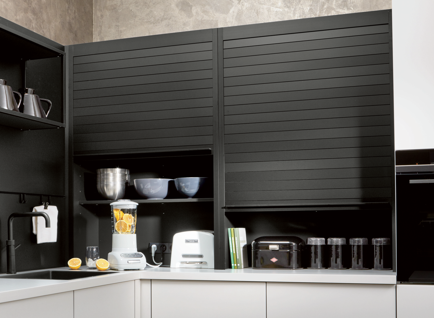 Кухонный гарнитур с жалюзийными дверцами