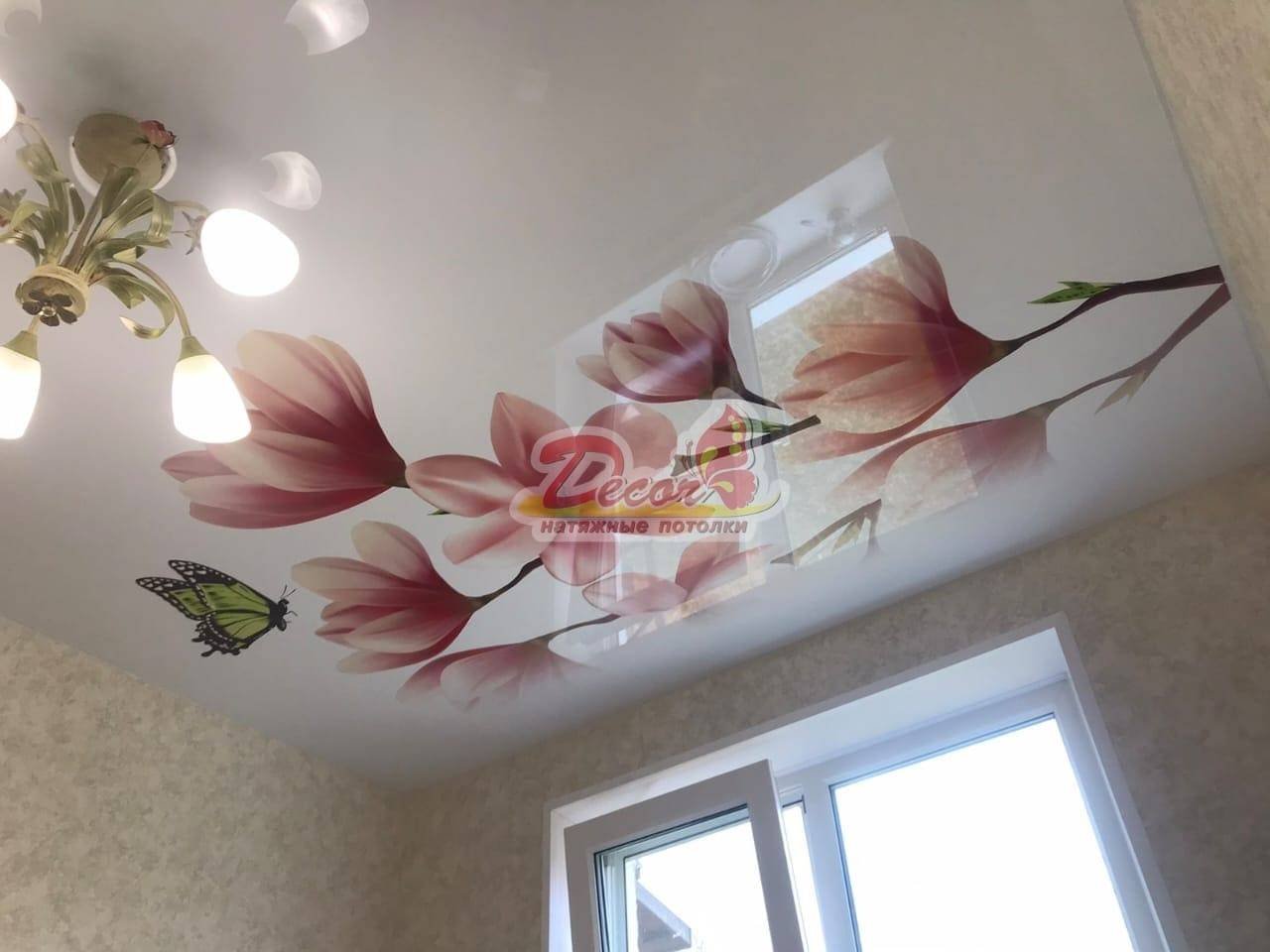 Натяжные потолки фотопечать цветы