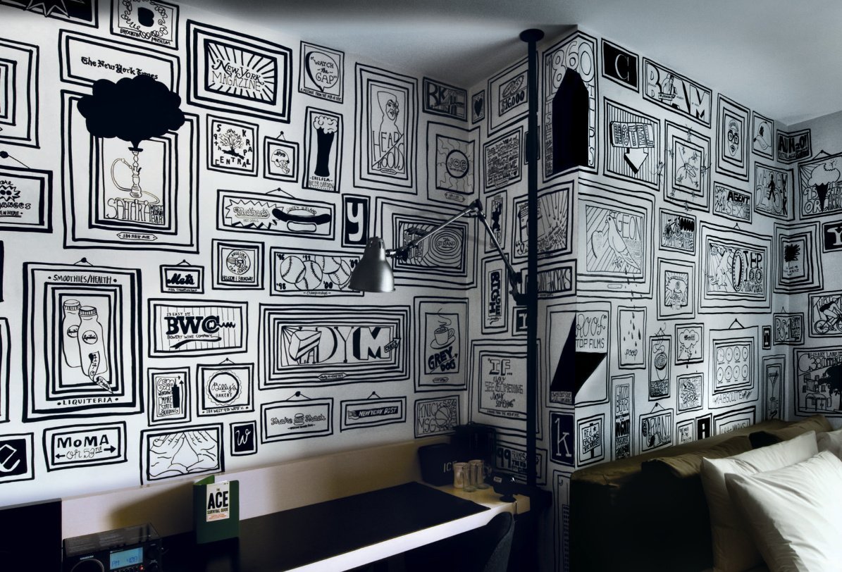 Графика в интерьере черно-белая