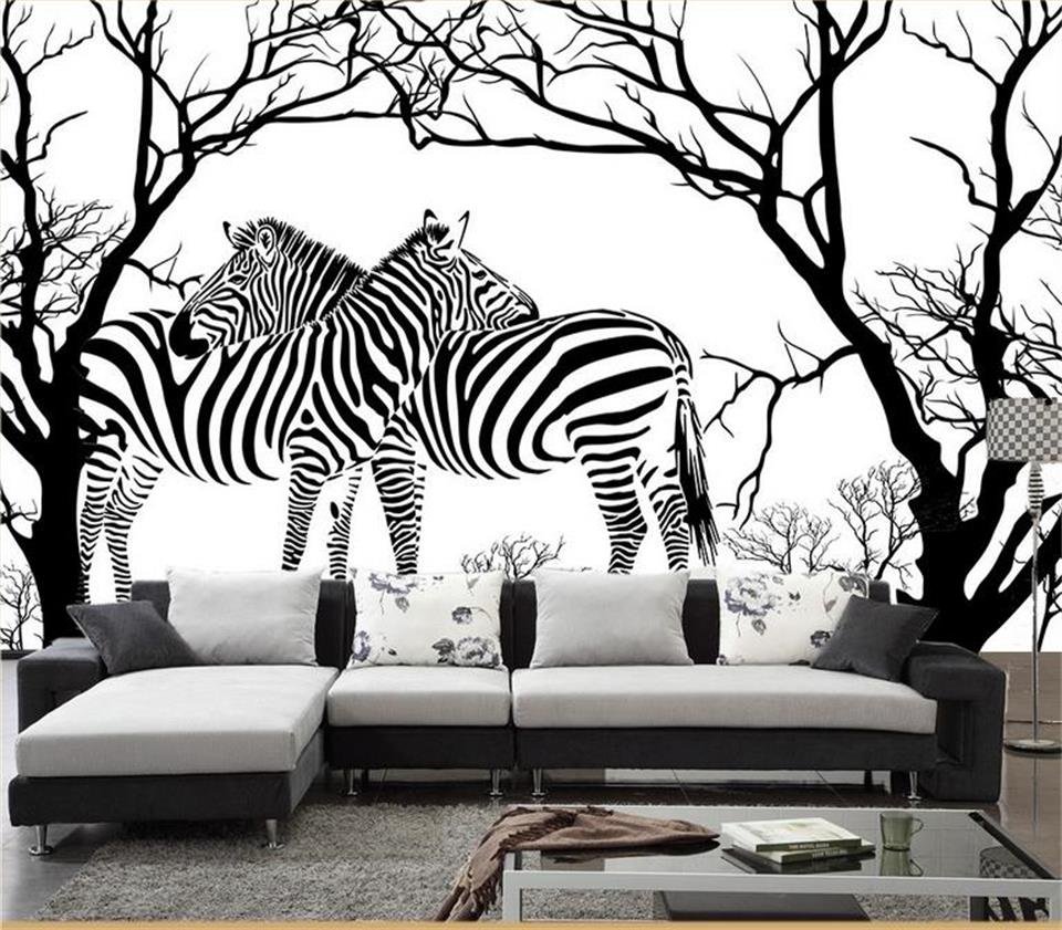 Черно белая роспись стен джунгли