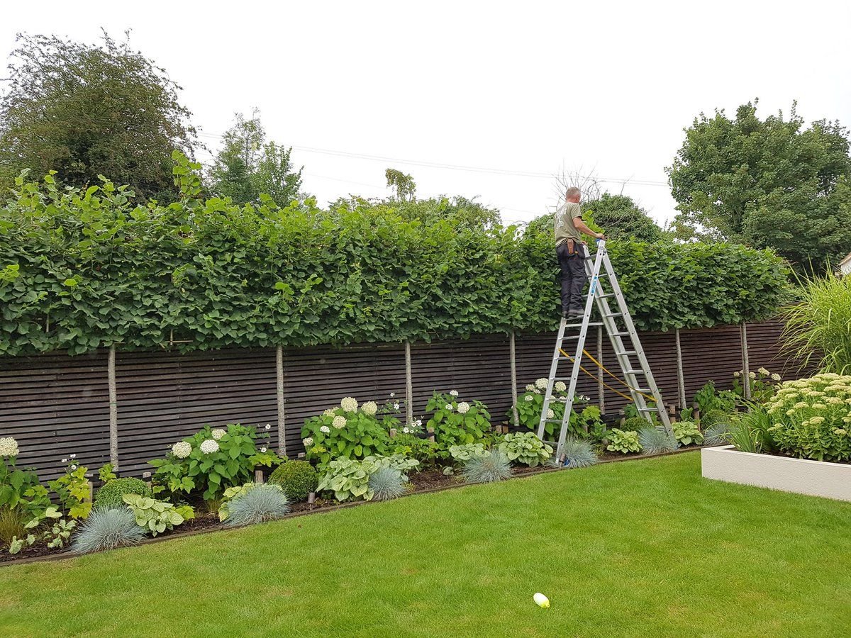 Деревья вдоль забора на участке
