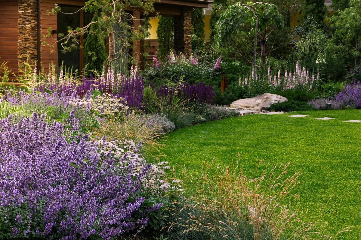 Цветник с шалфеем и котовником