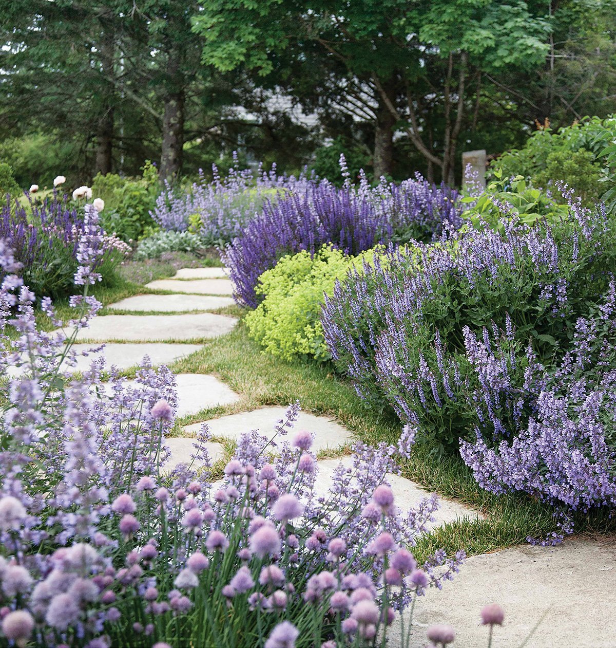 Миксбордер с самшитом и лавандой