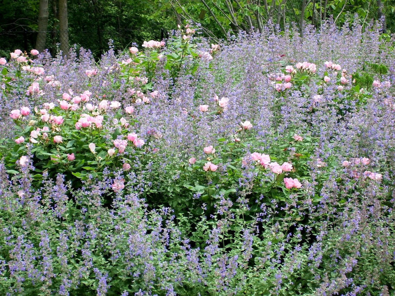 Котовник Фассена с розами