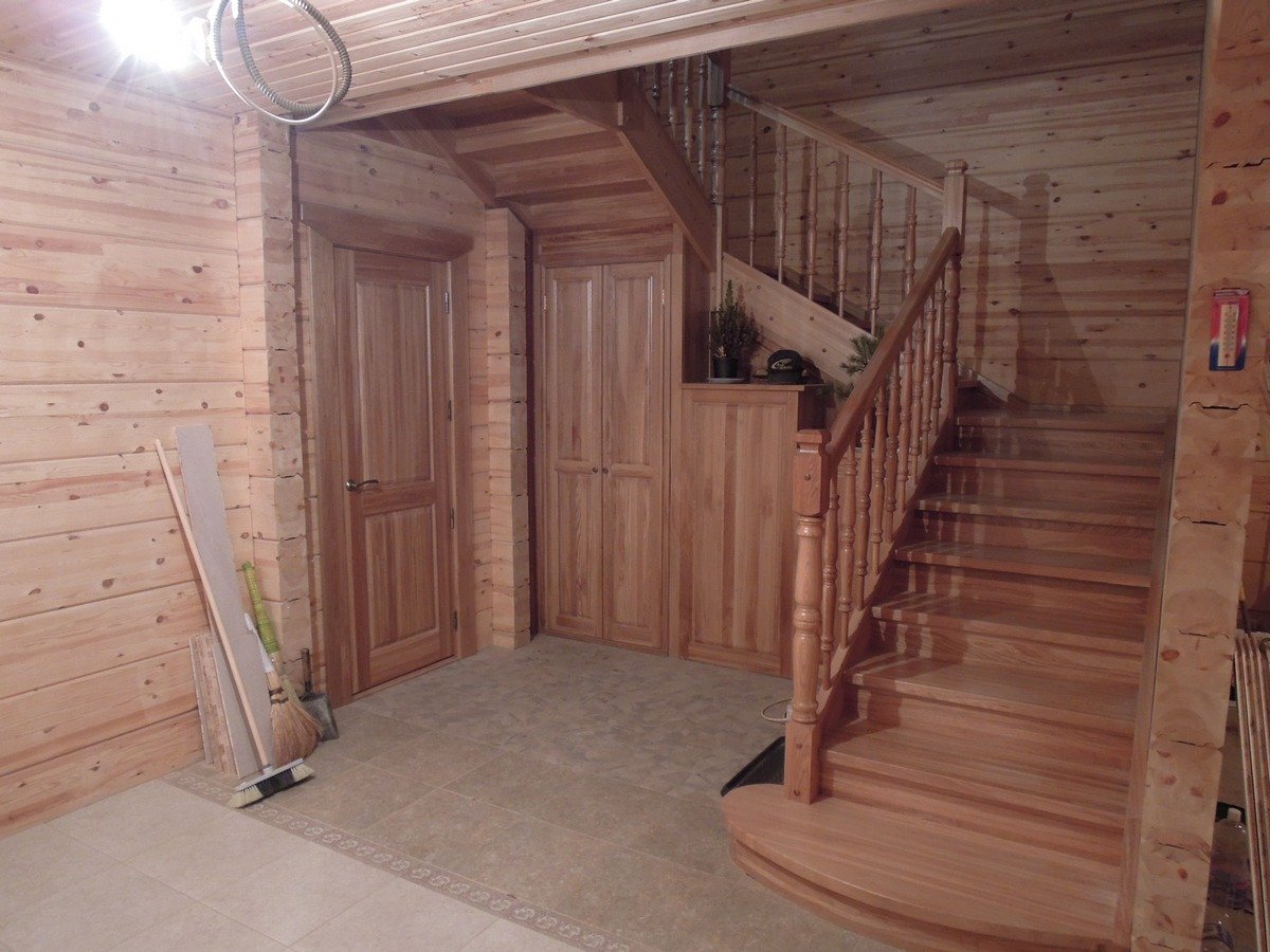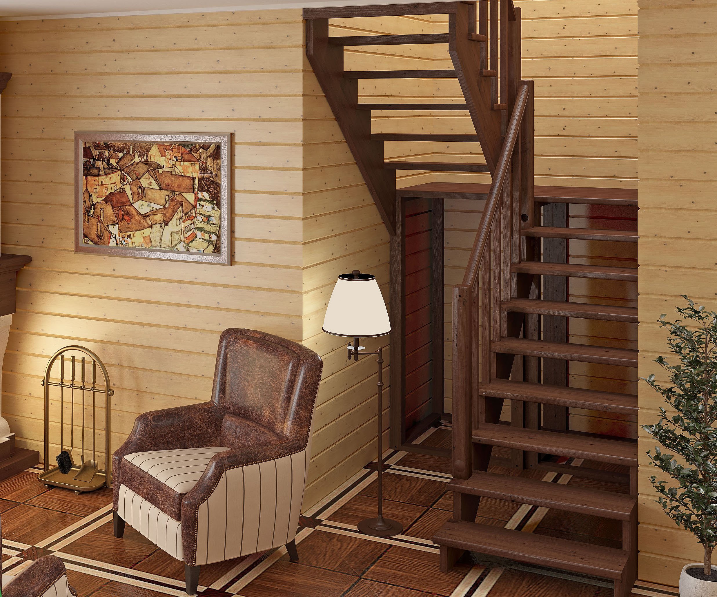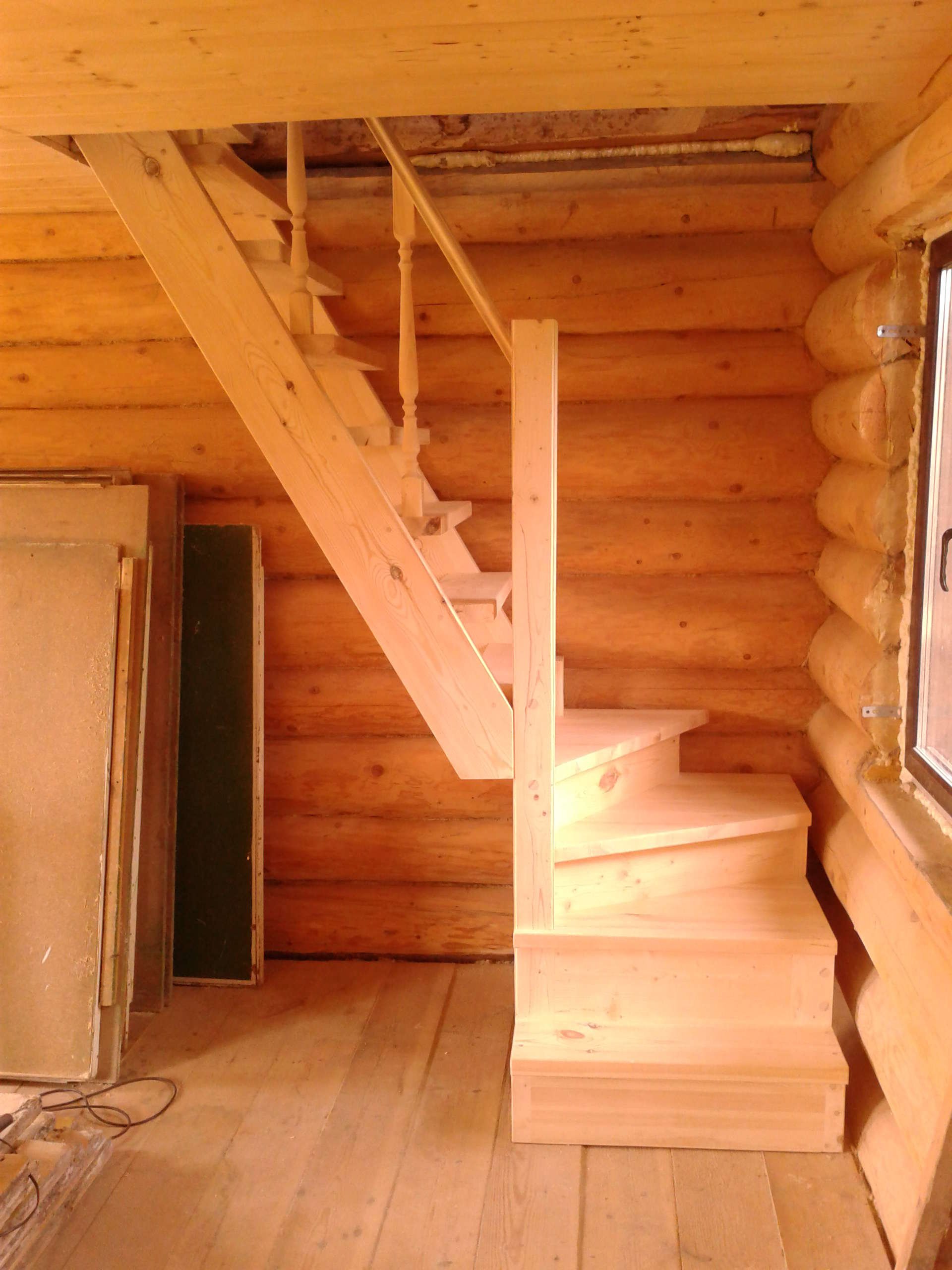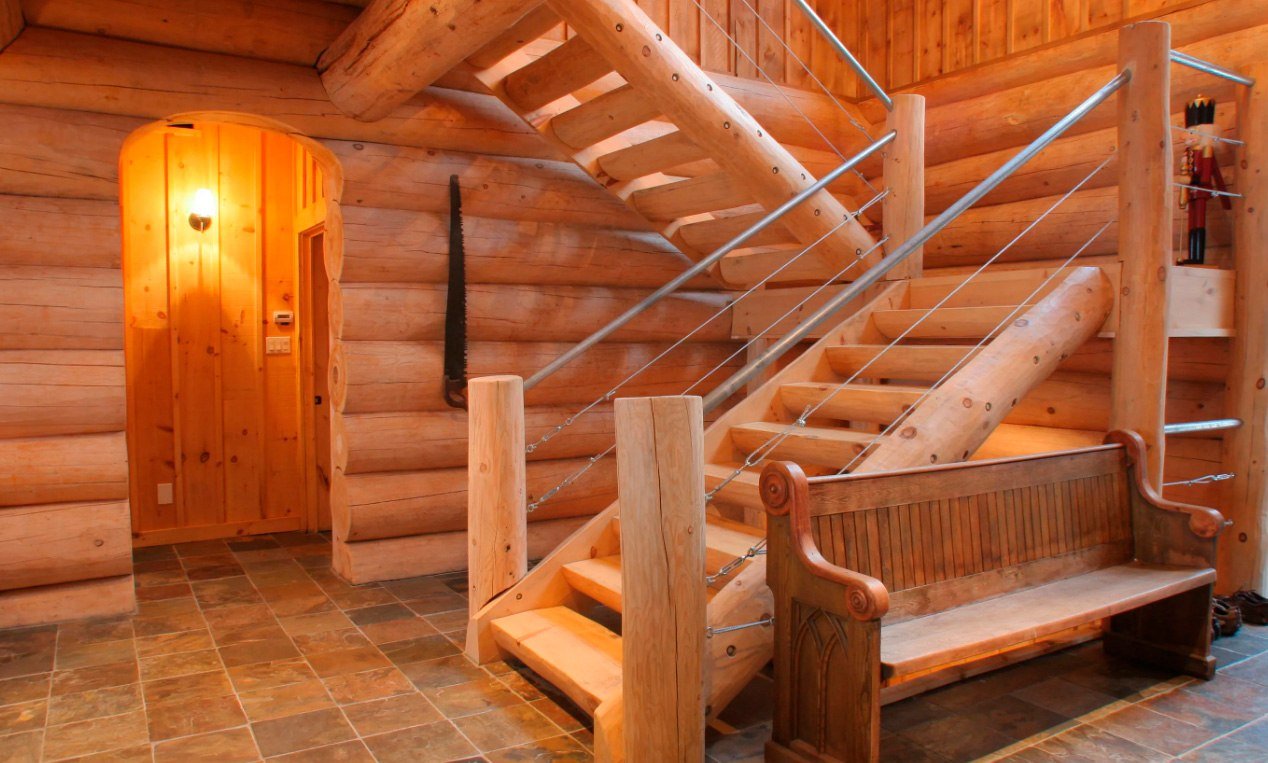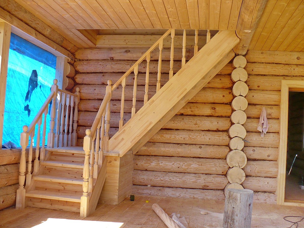 Деревянная лестница на 2 этаж в бревенчатом доме