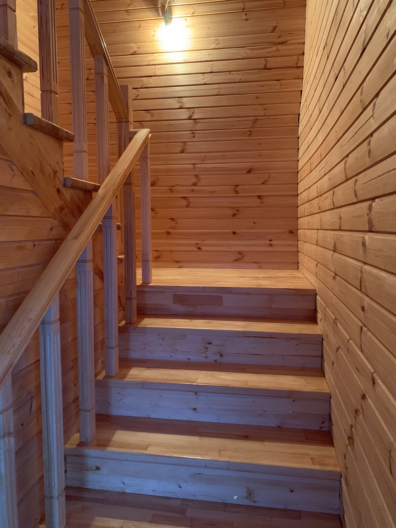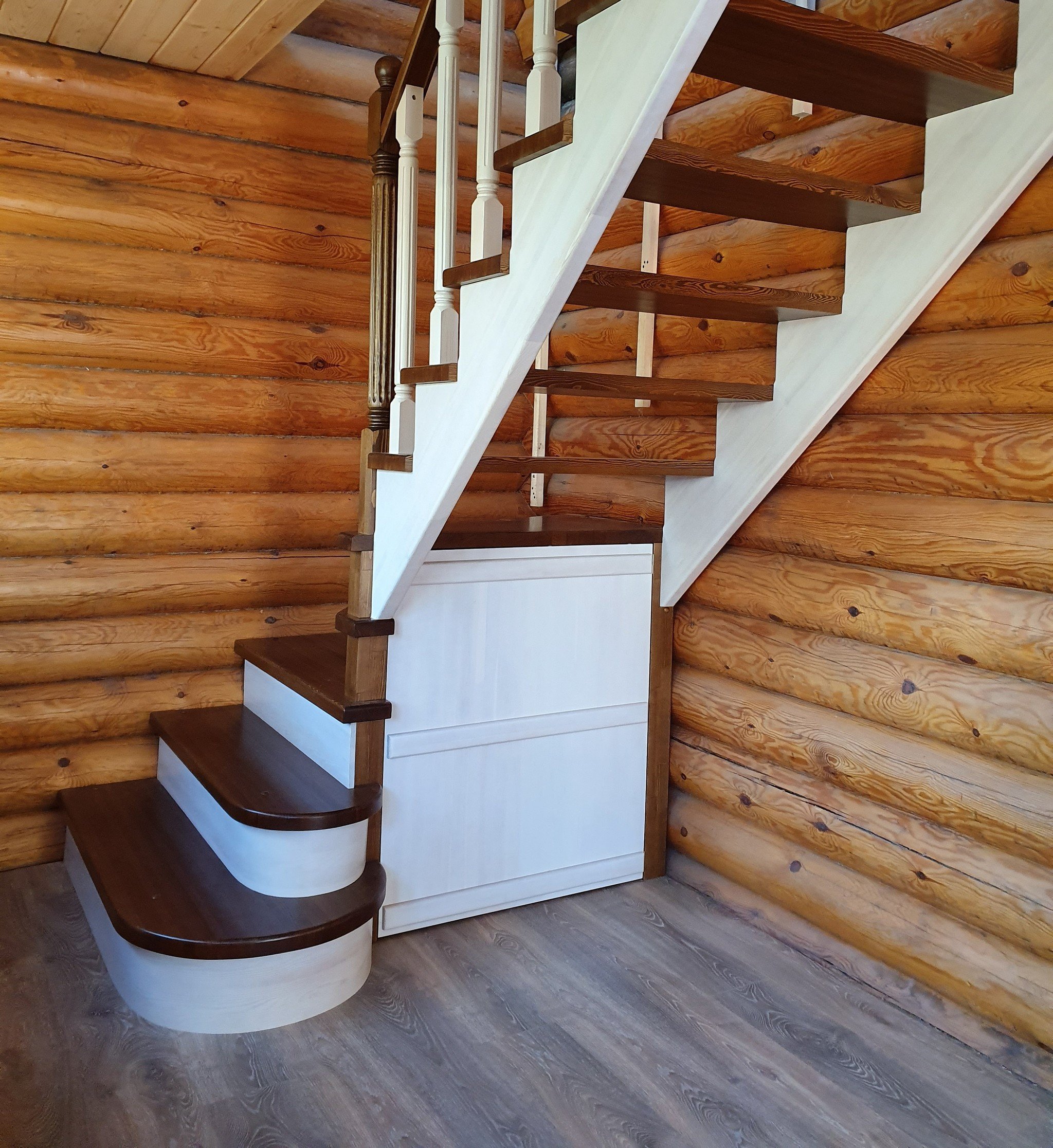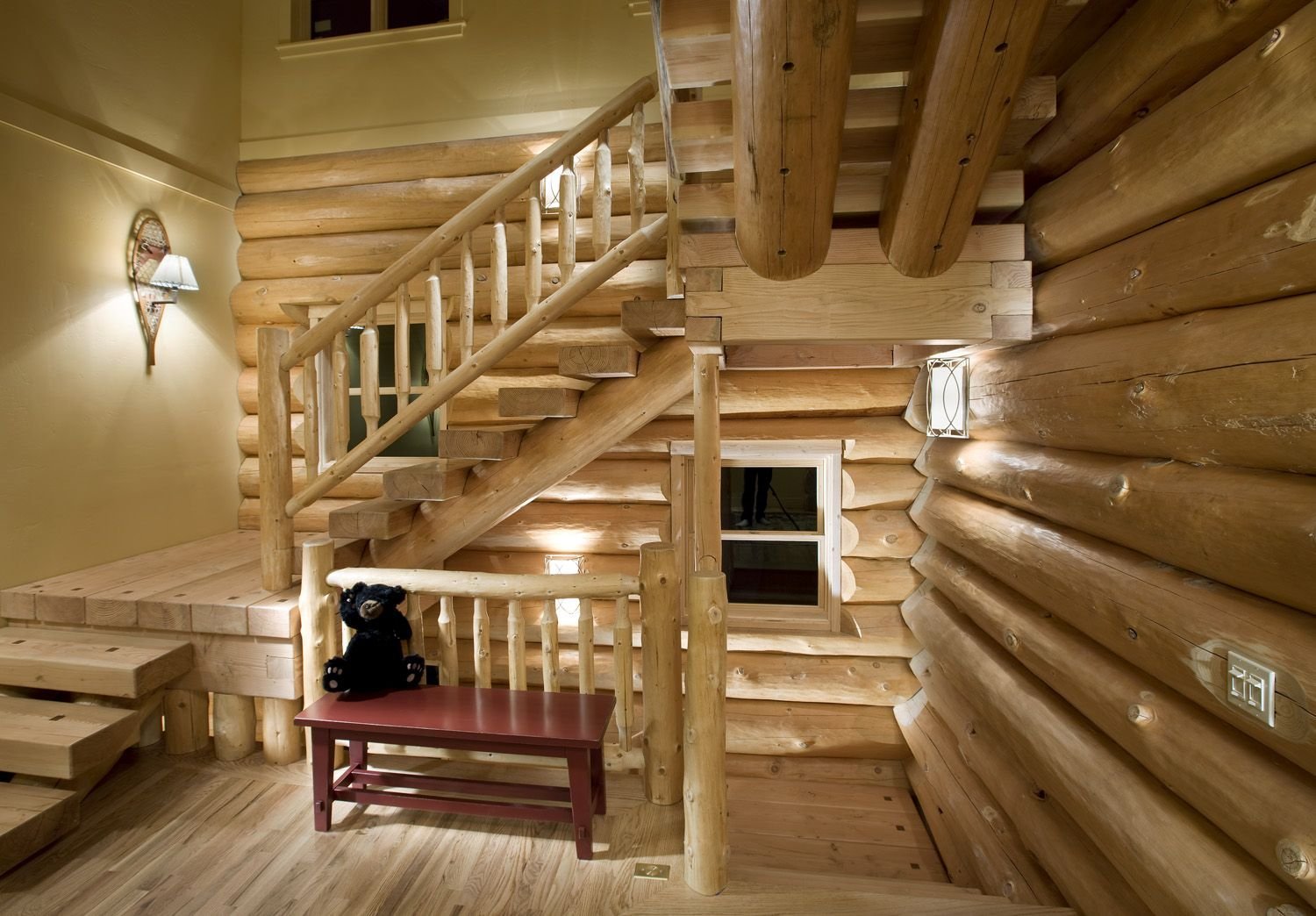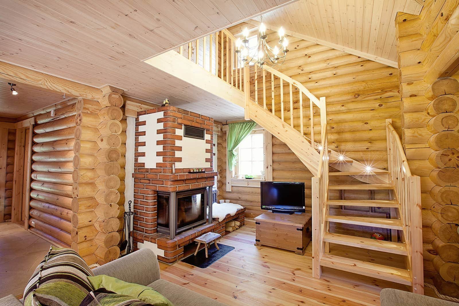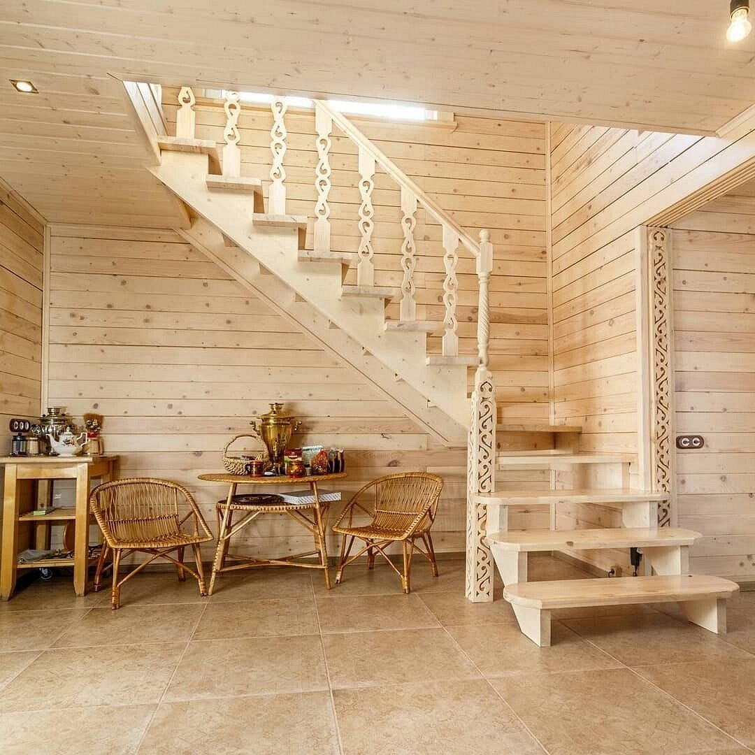 Деревянная лестница на 2 этаж в бревенчатом доме
