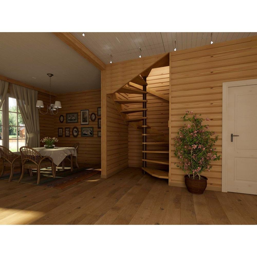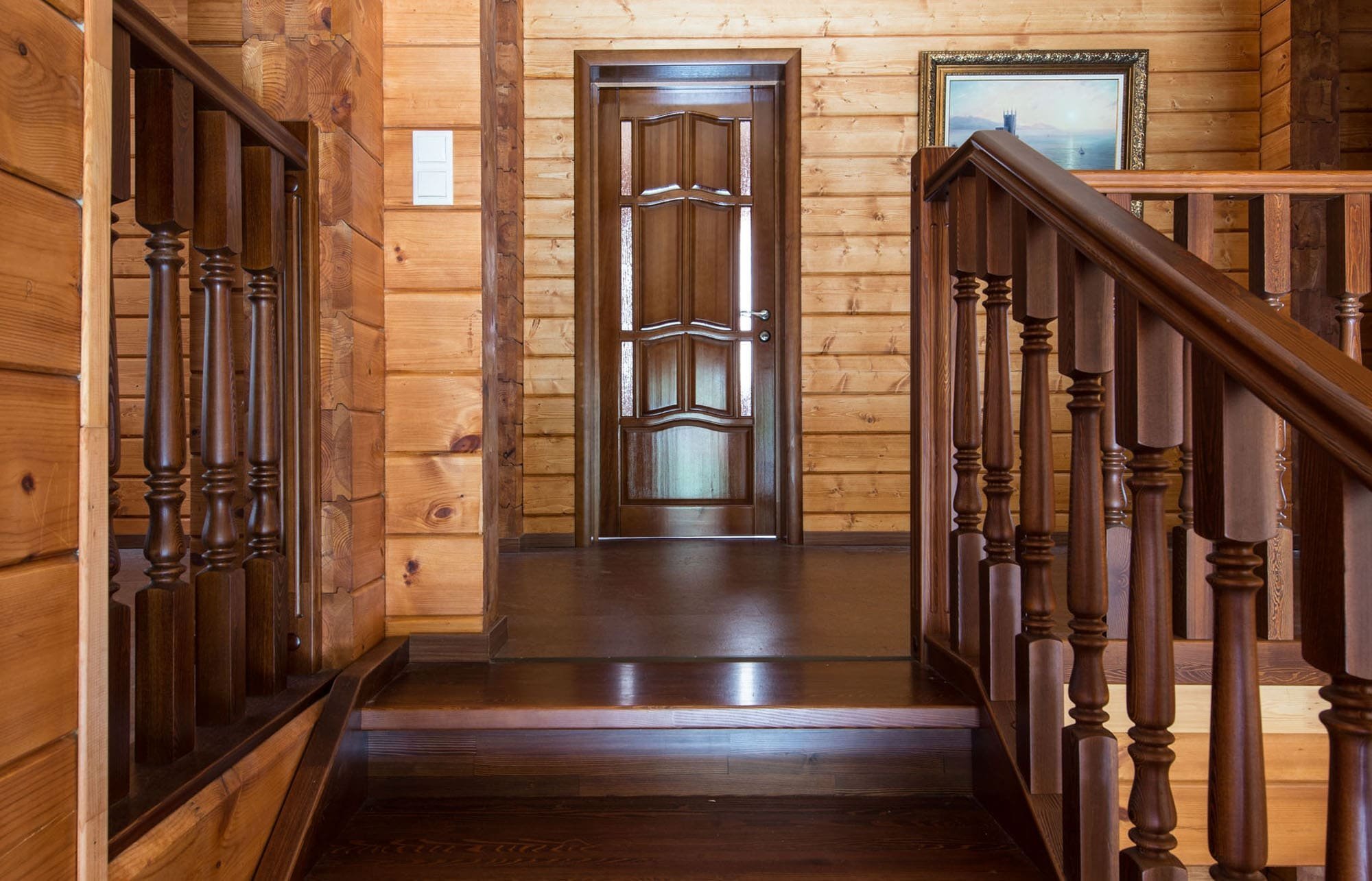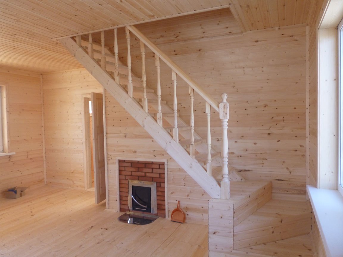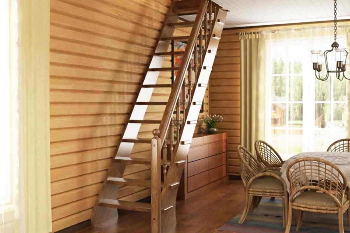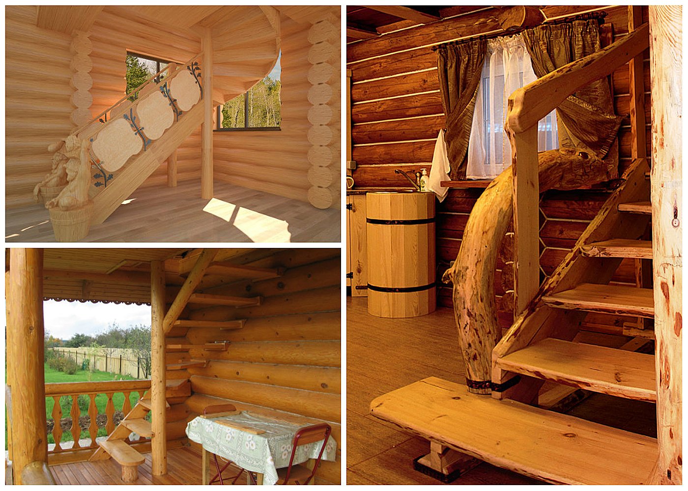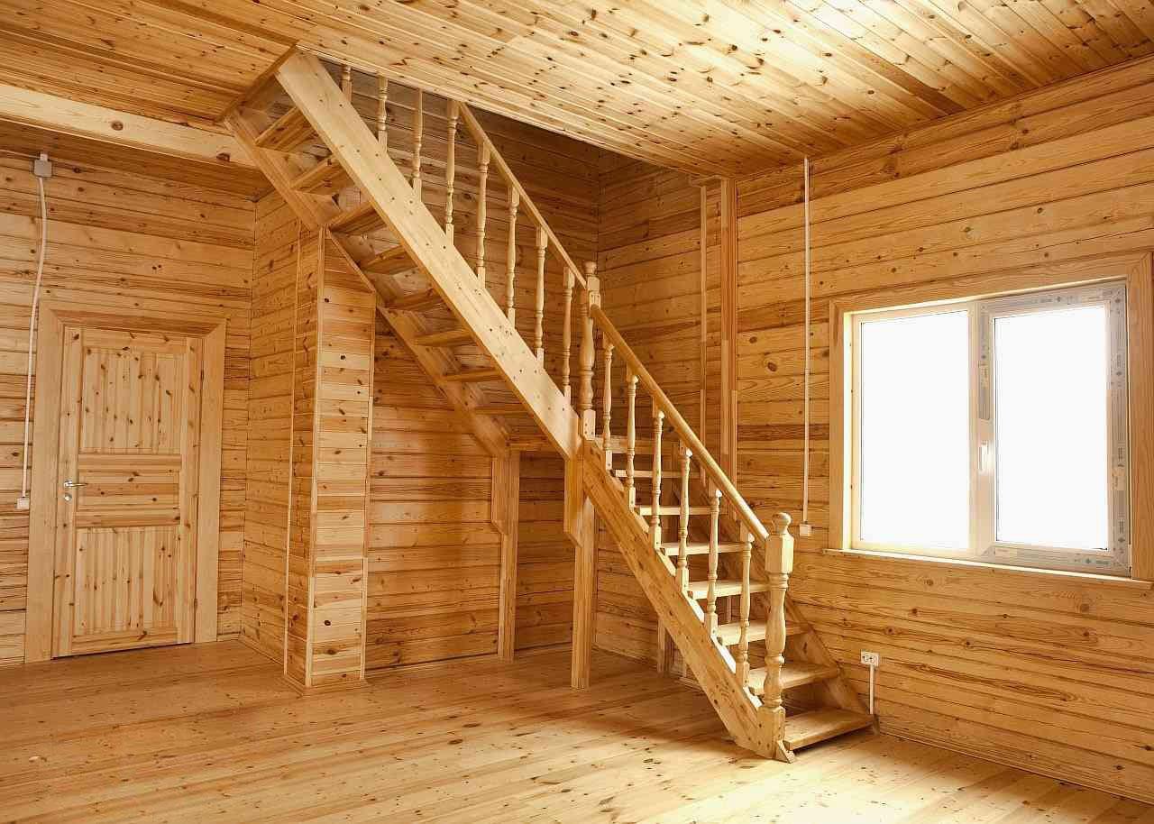 Деревянная лестница на 2 этаж в бревенчатом доме