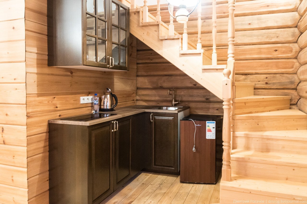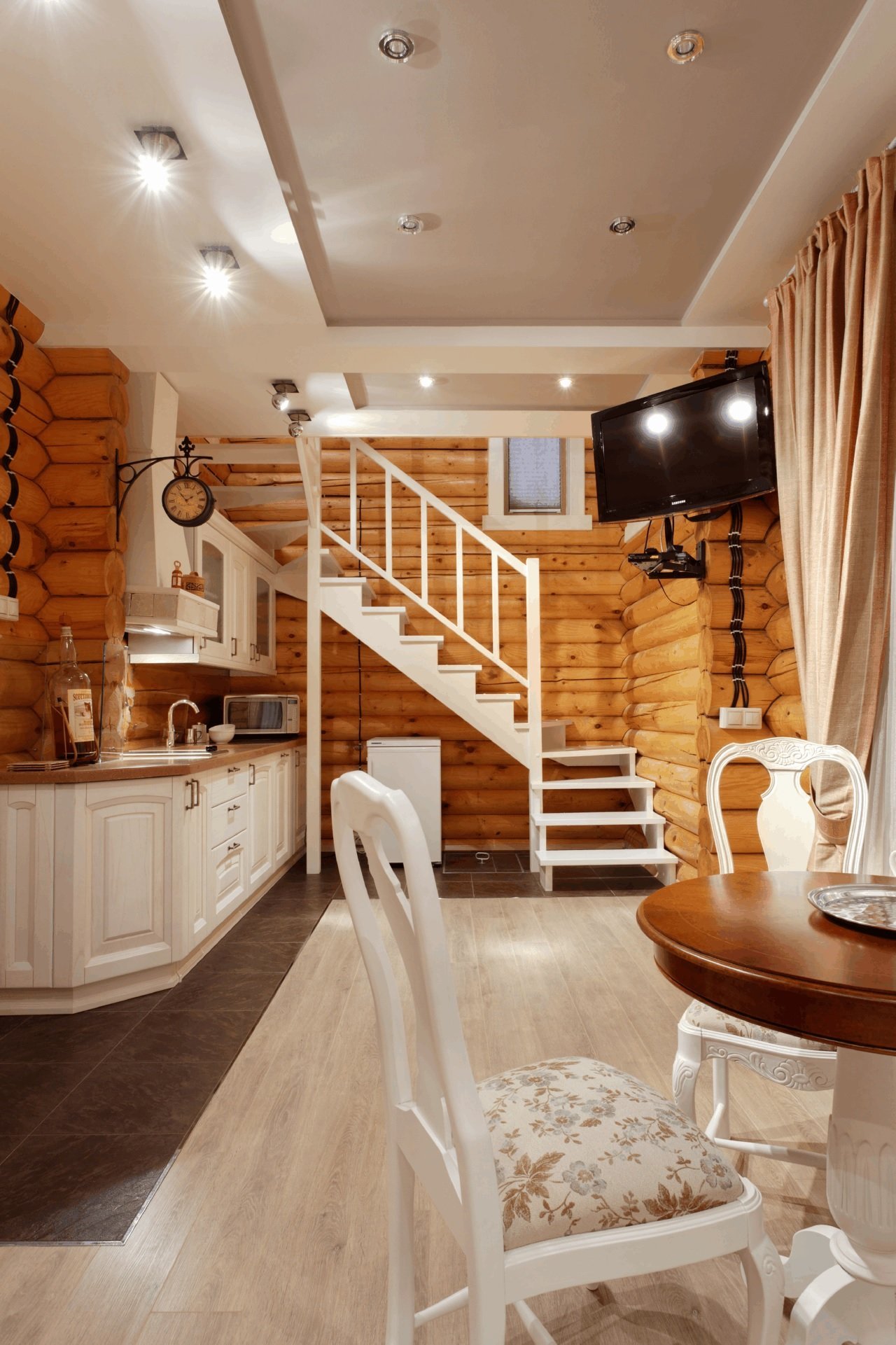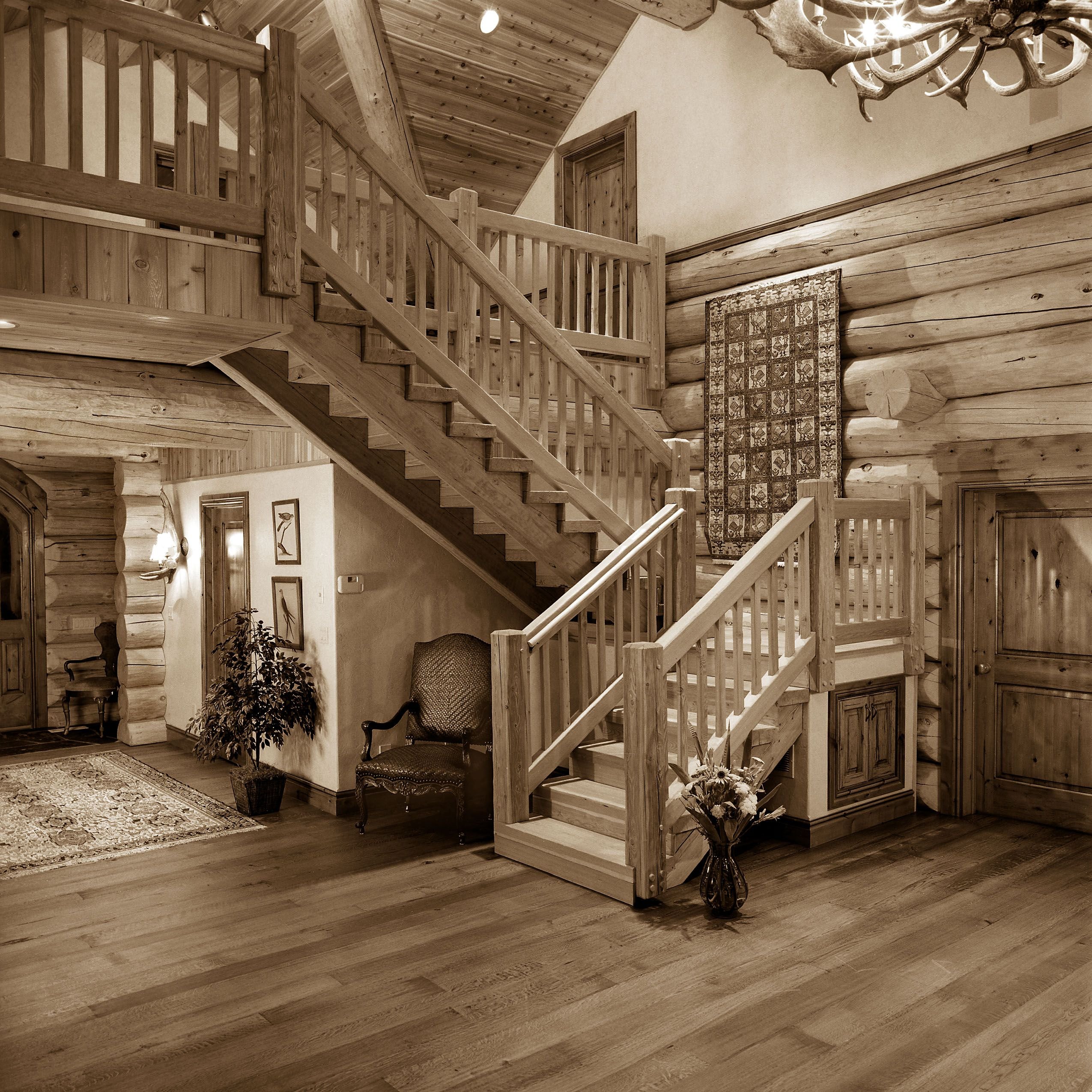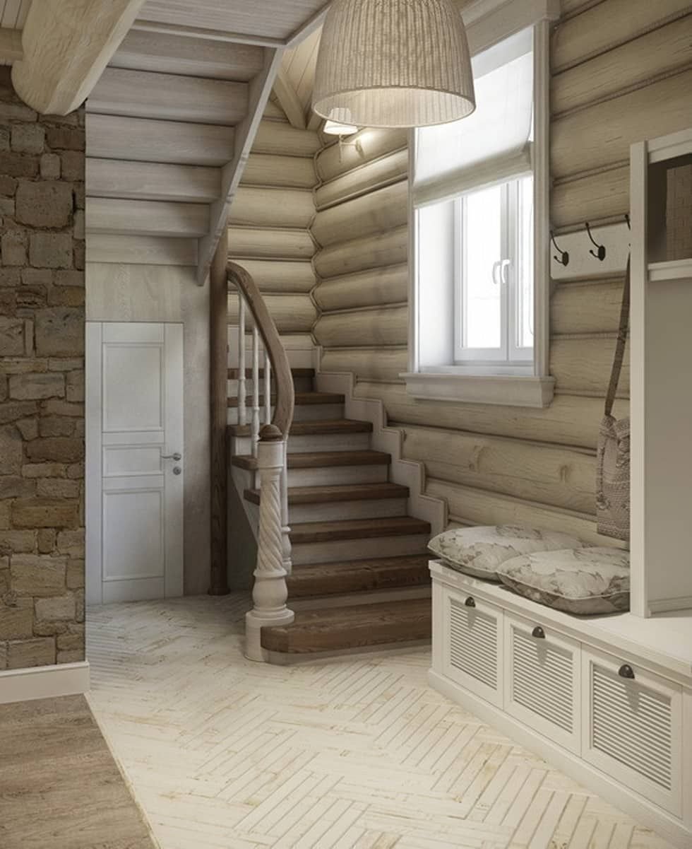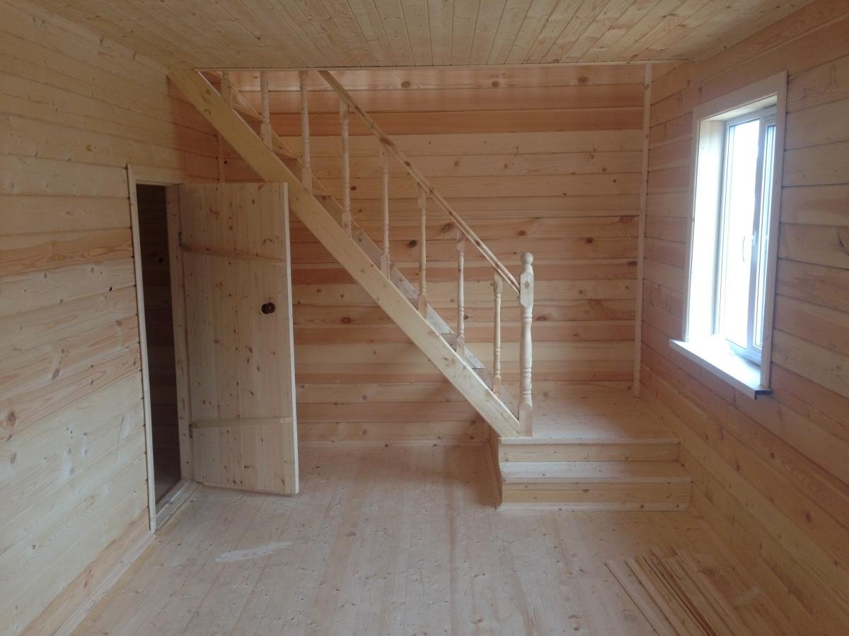 Деревянная лестница на 2 этаж в бревенчатом доме