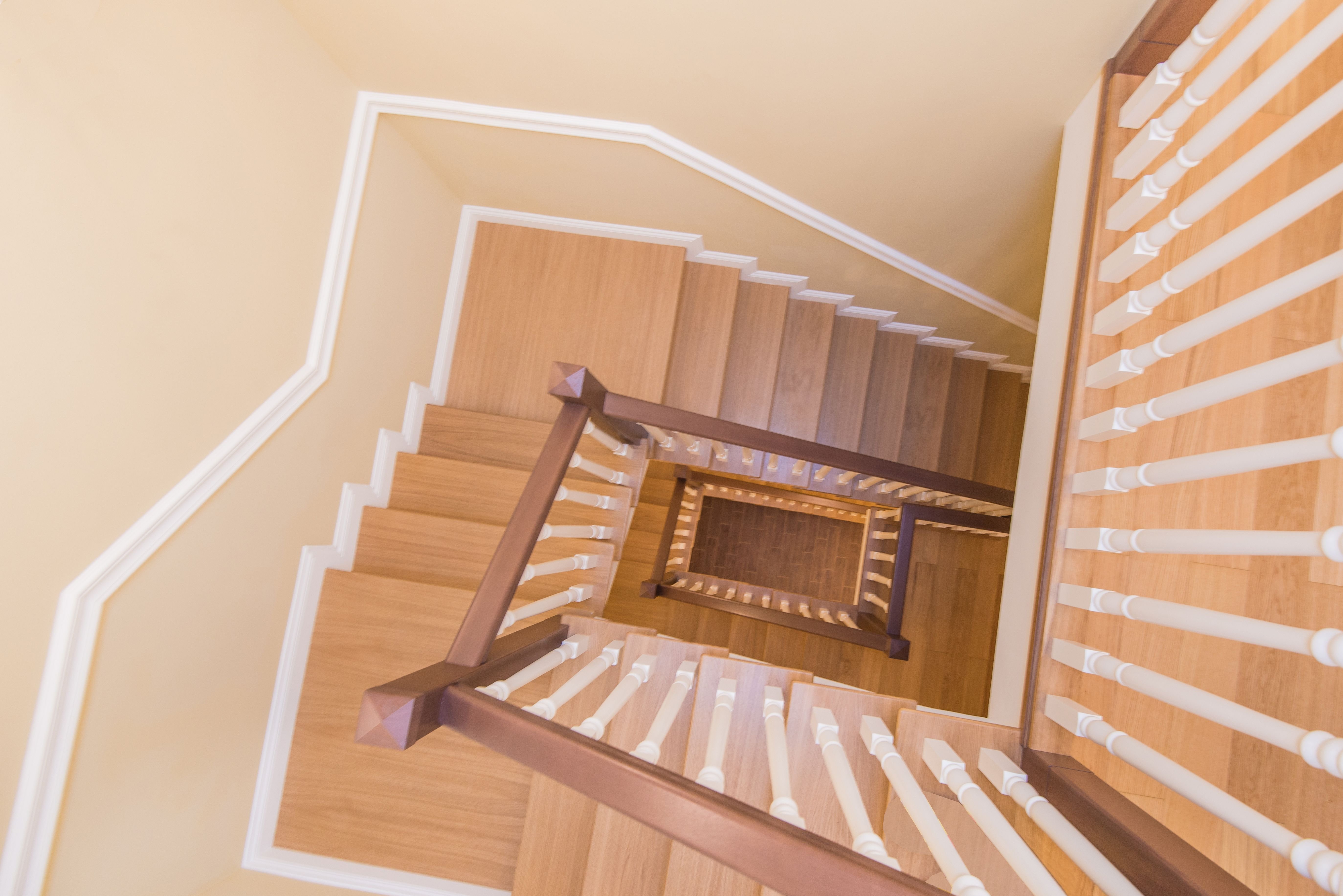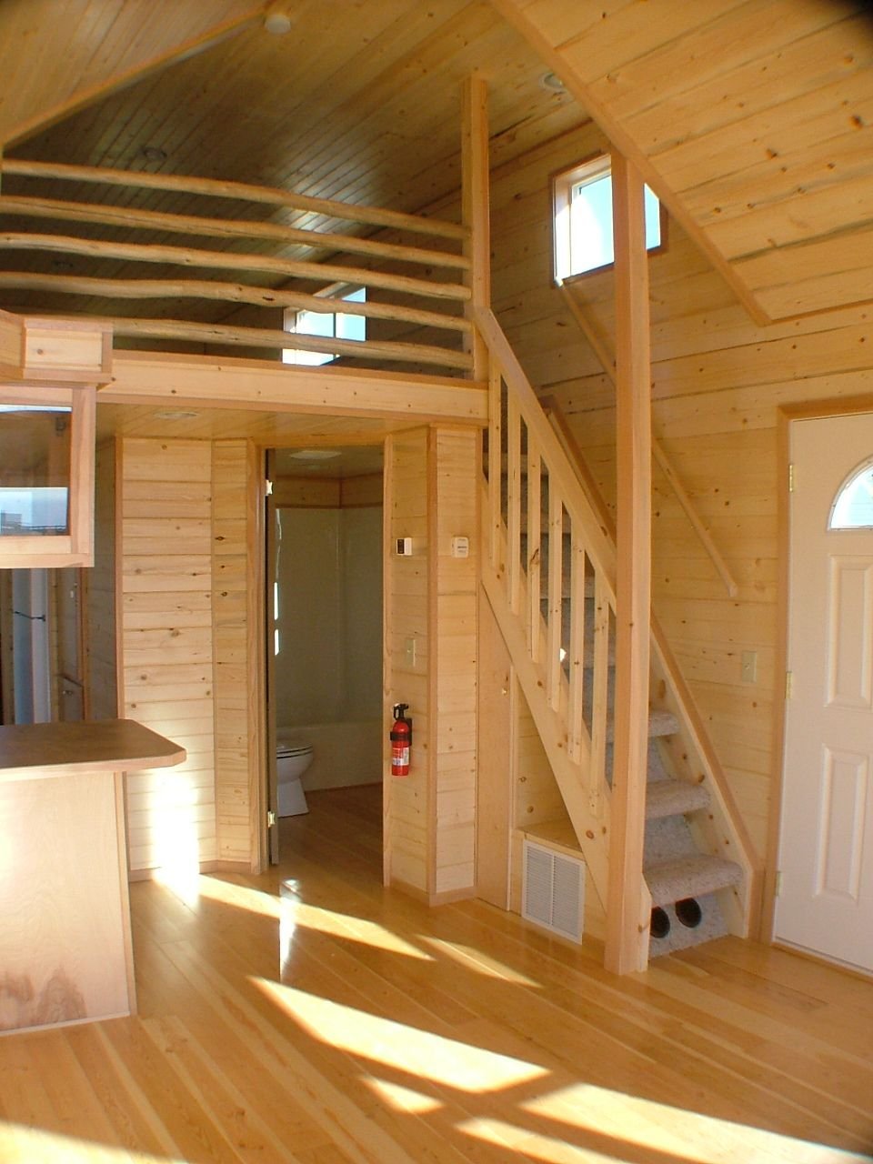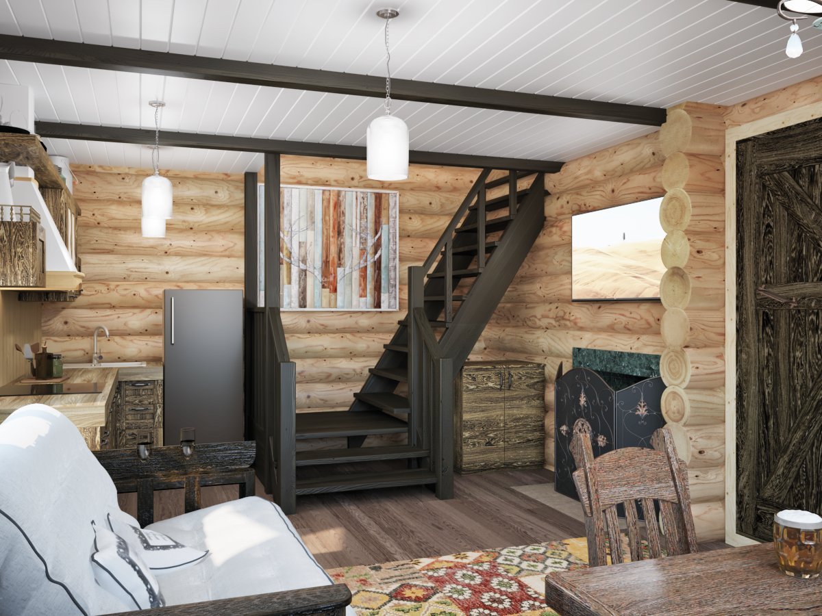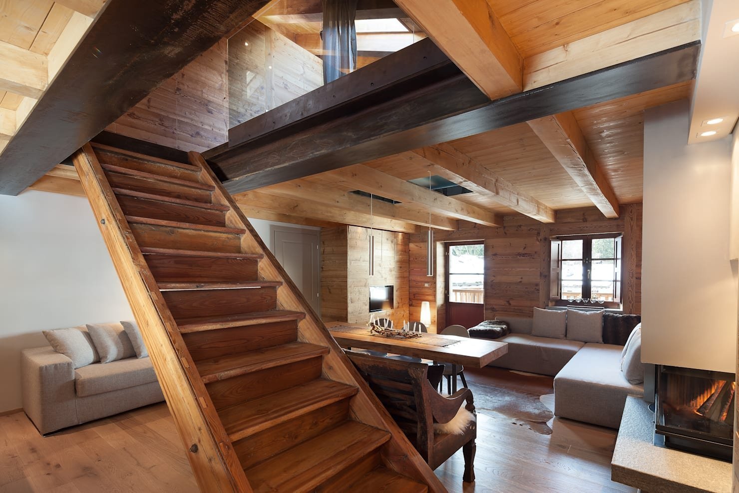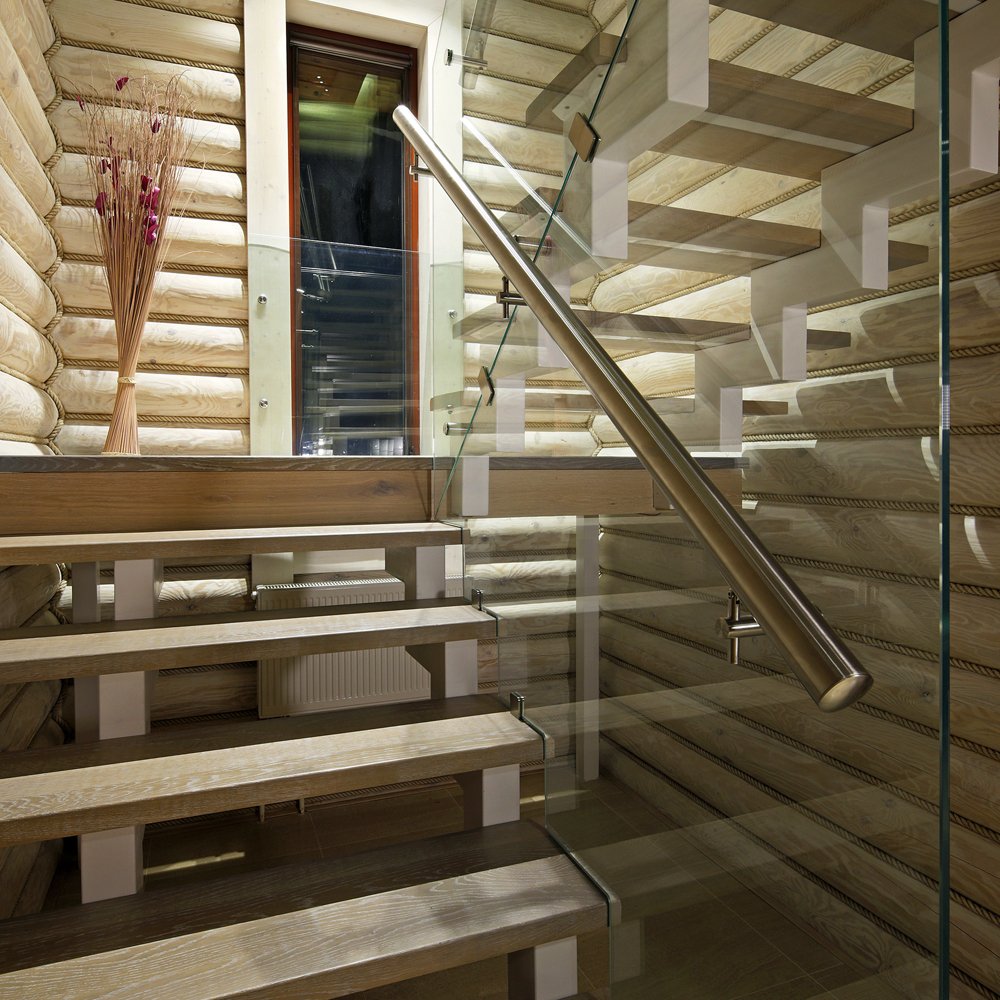 Деревянная лестница на 2 этаж в бревенчатом доме