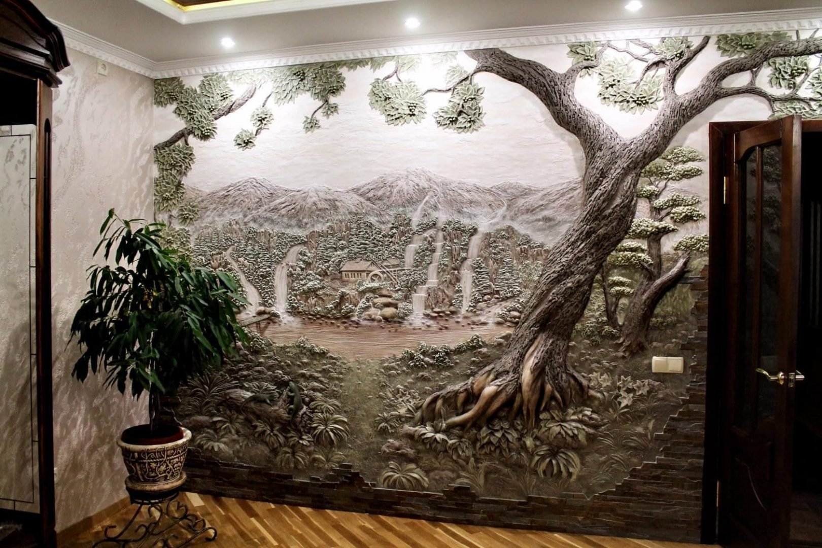 Барельеф дерево на стене