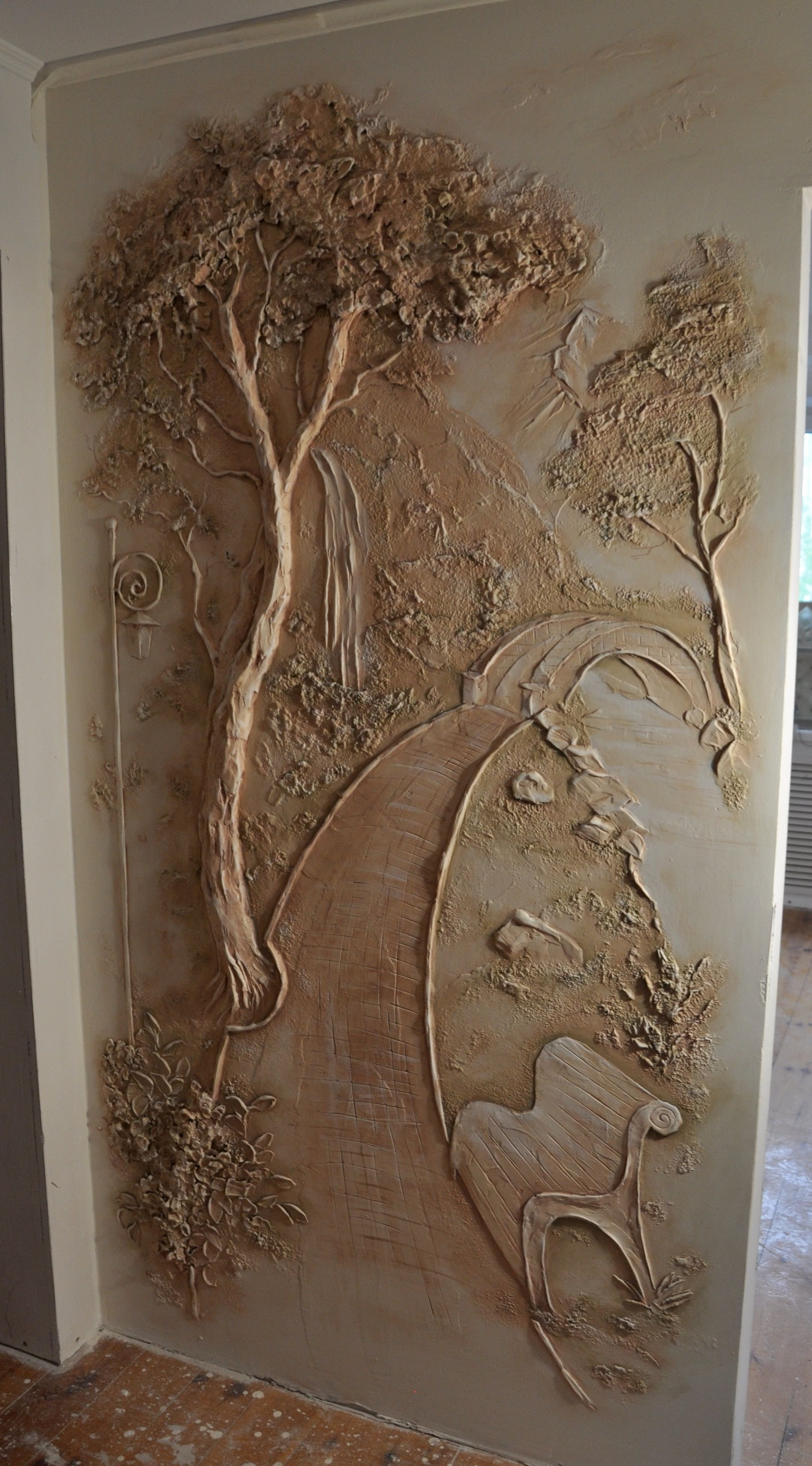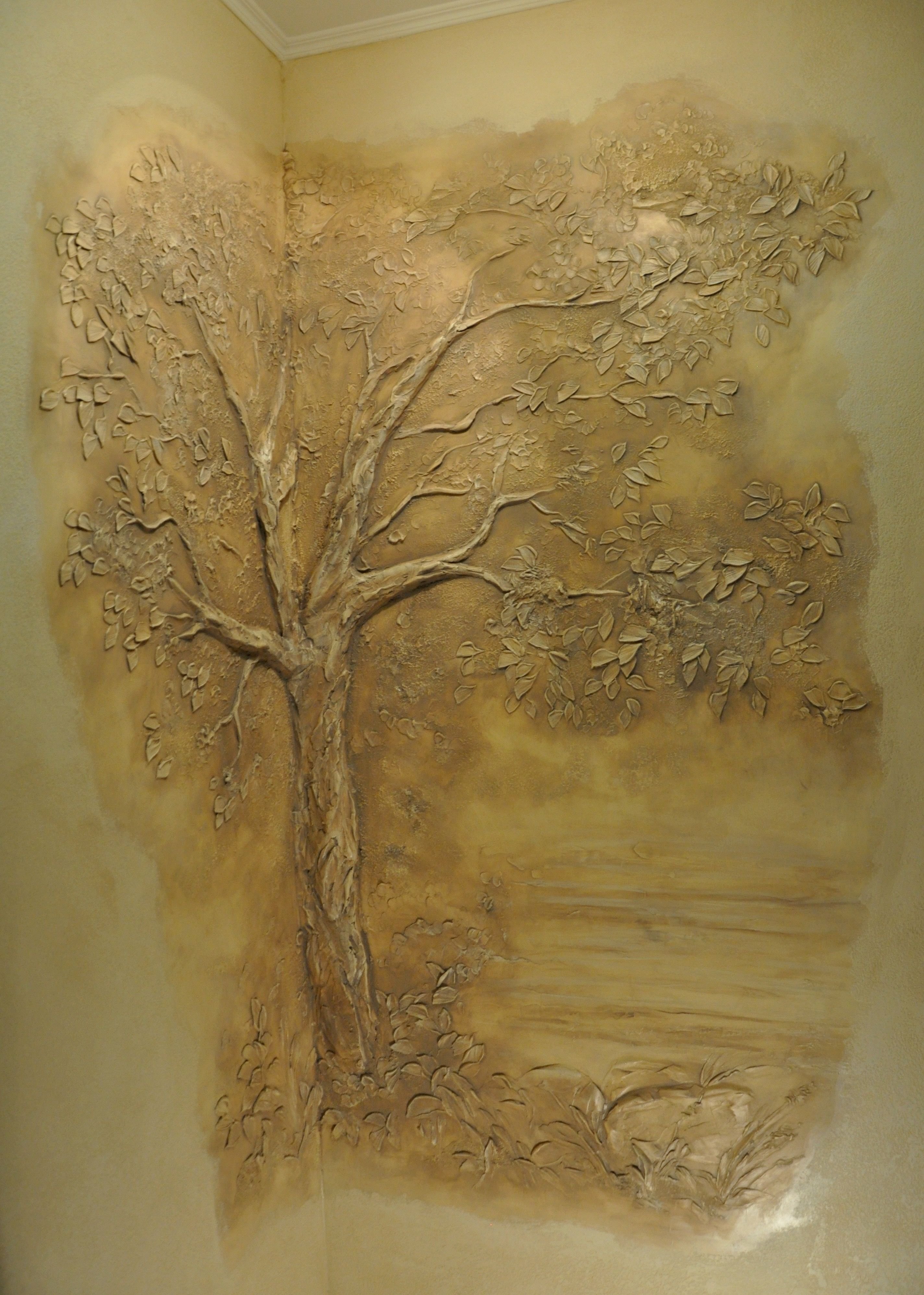 Дерево из шпаклевки на стене