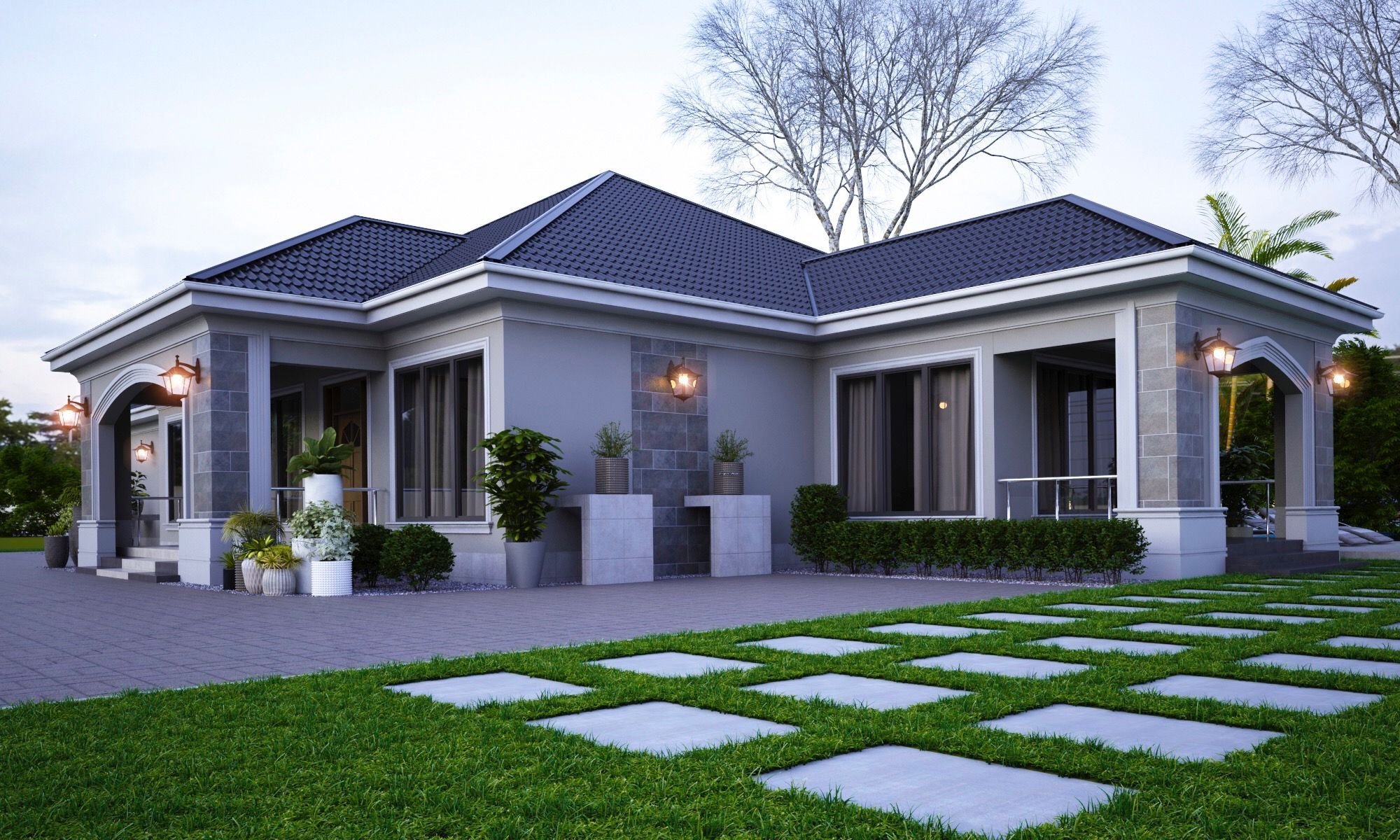Одноэтажный дом с панорамными окнами