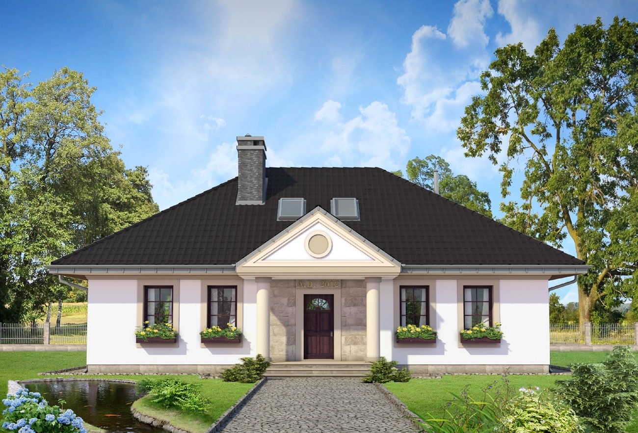 Одноэтажный дом в стиле Неоклассика фасад