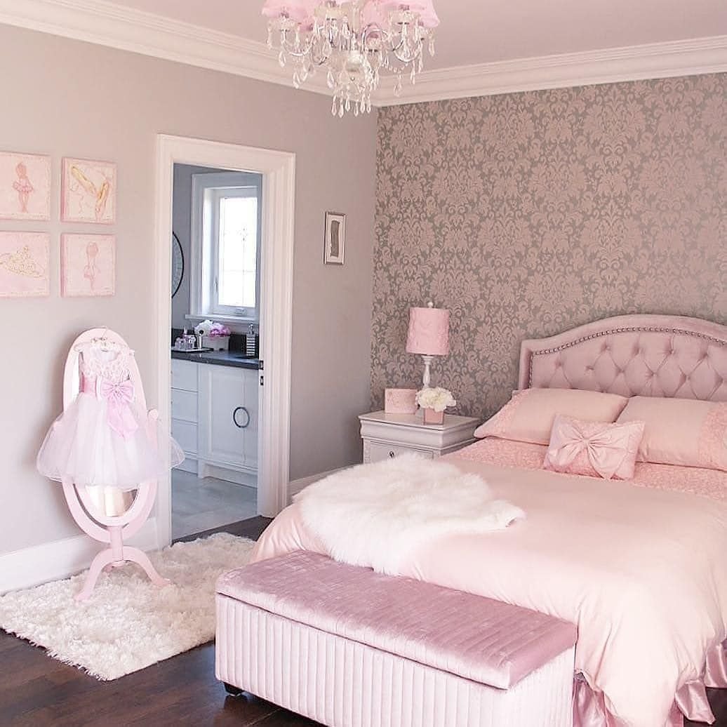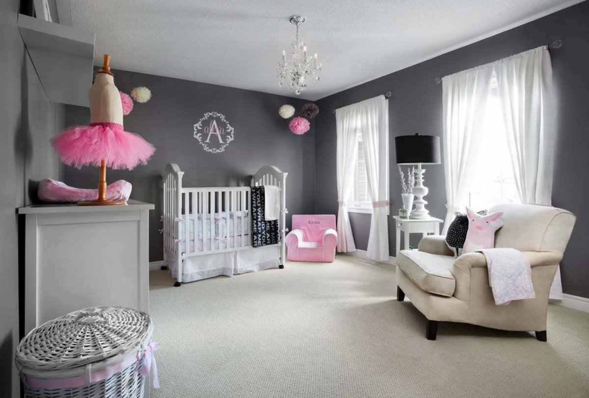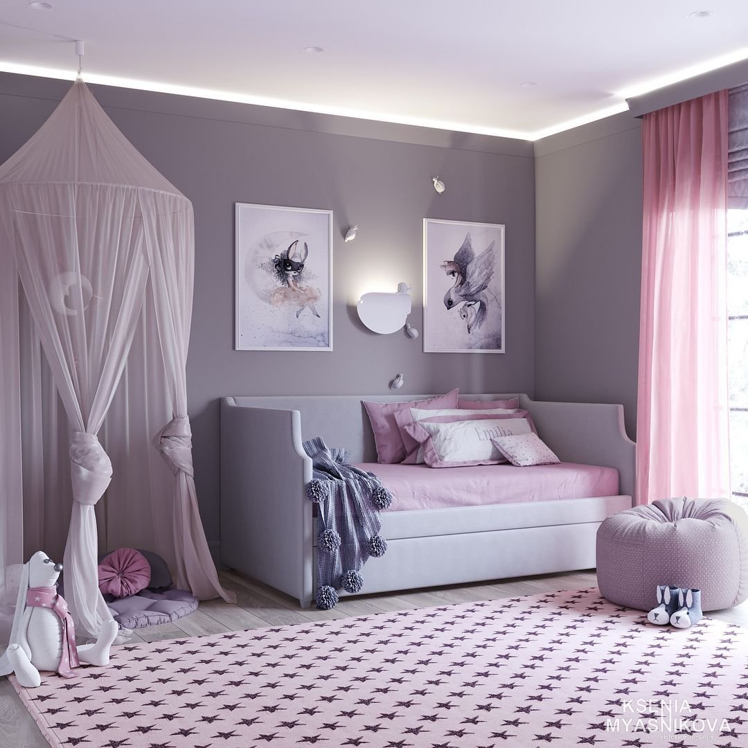 Комната для девочки в серо-розовых тонах