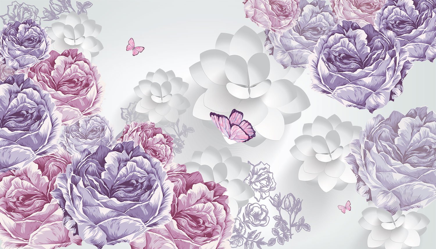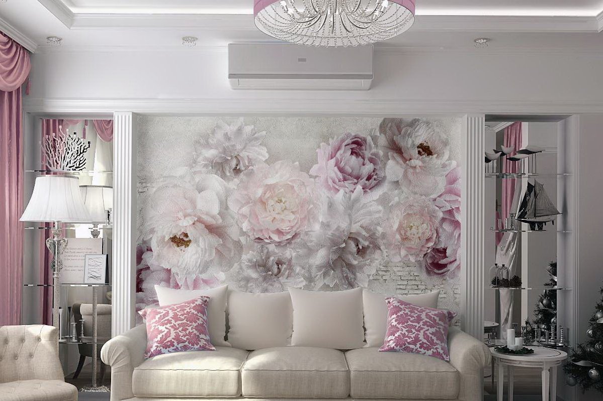 Обои розовые цветки по серому тону