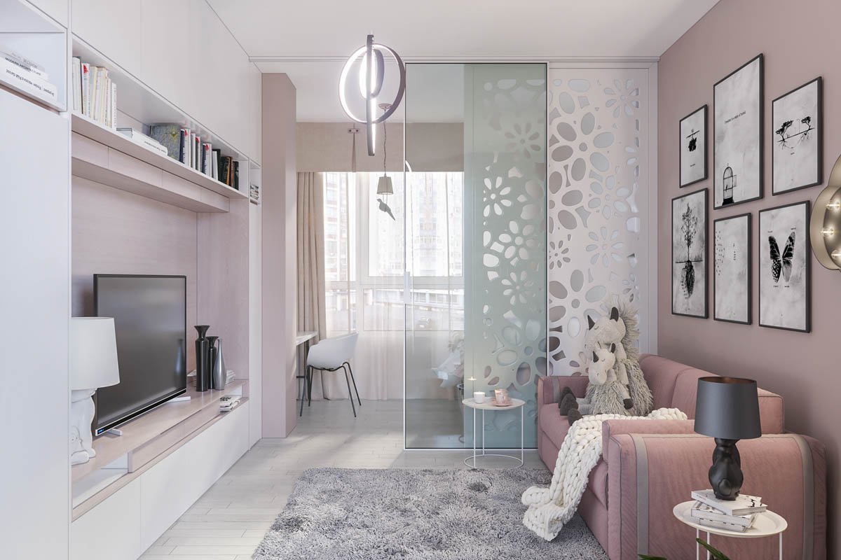 Интерьер в серо розовых тонах
