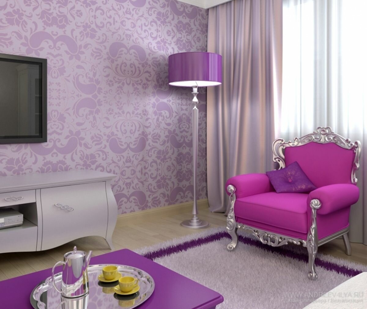 Гостиная в сиреневых тонах