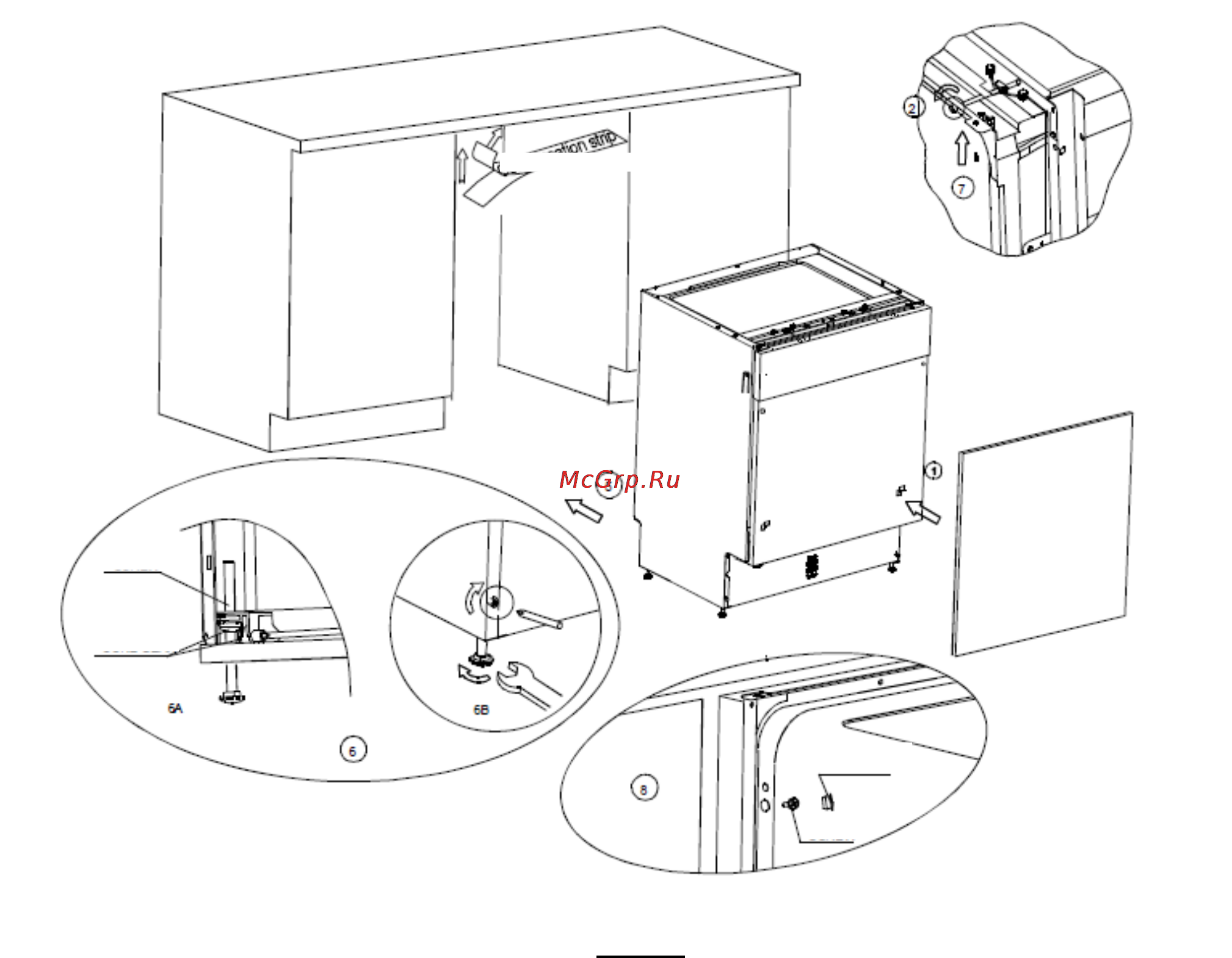 Регулировка дверцы посудомоечной машины бош